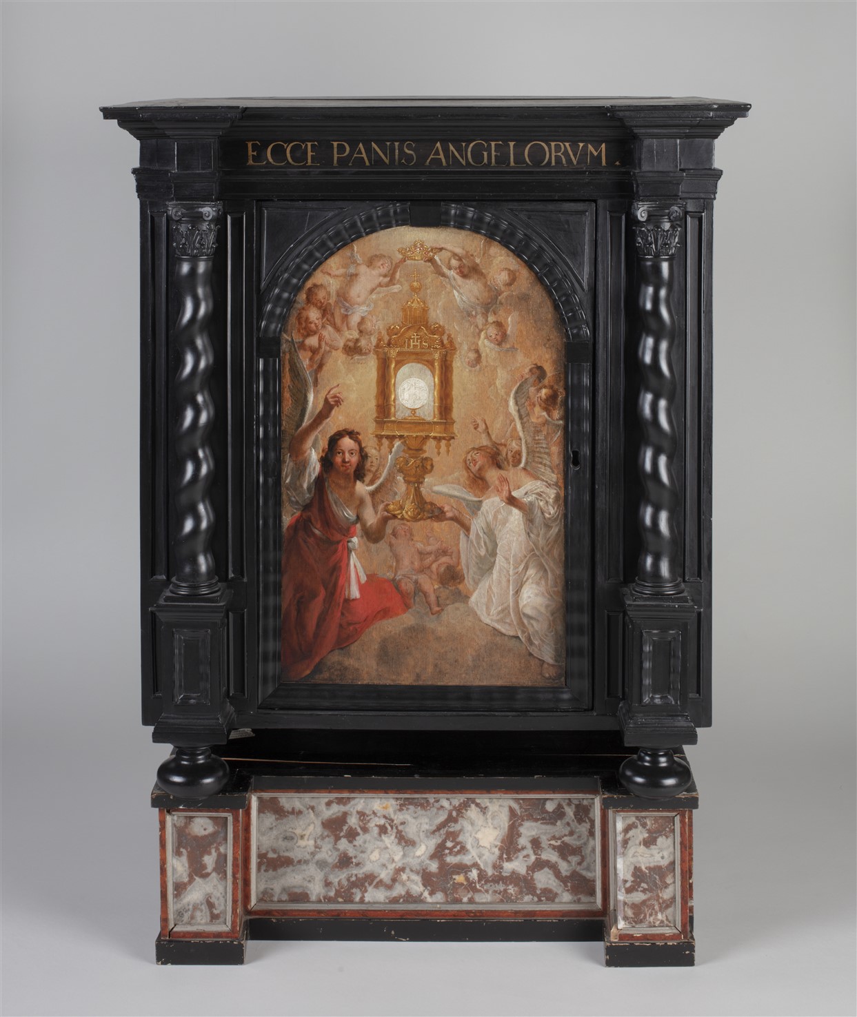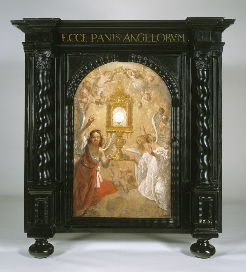 Tabernakelkast met beschilderde deur waarop monstrans en hostie, uit St. Maria Minor te Utrecht