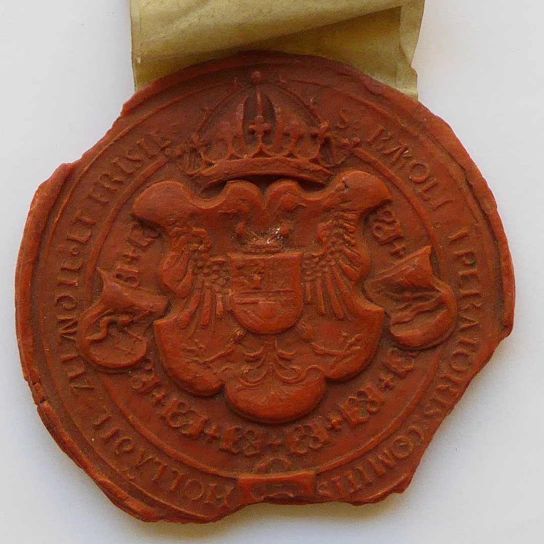Rood zegel: sigillum carole imperatoris Hollandie, Frisie