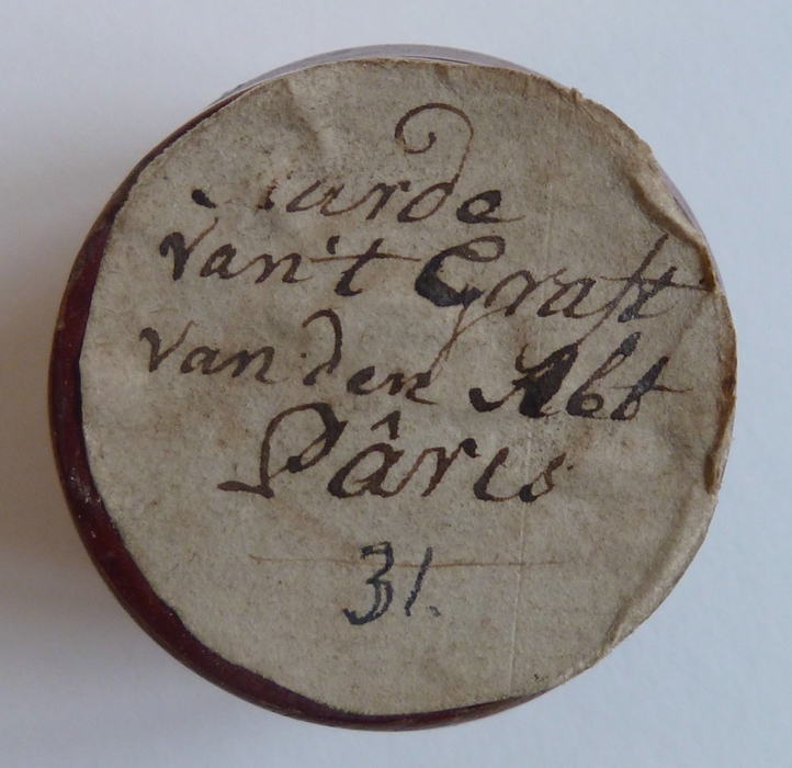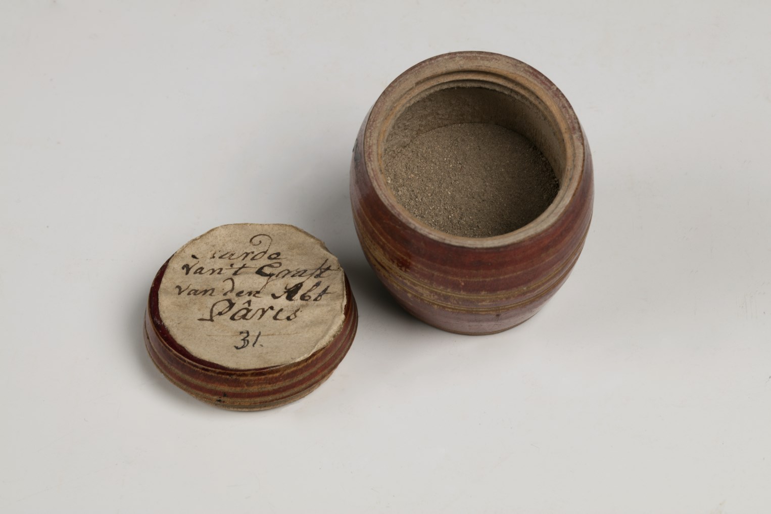 Aarde van het graf van François de Paris (1690-1727), in doosje
