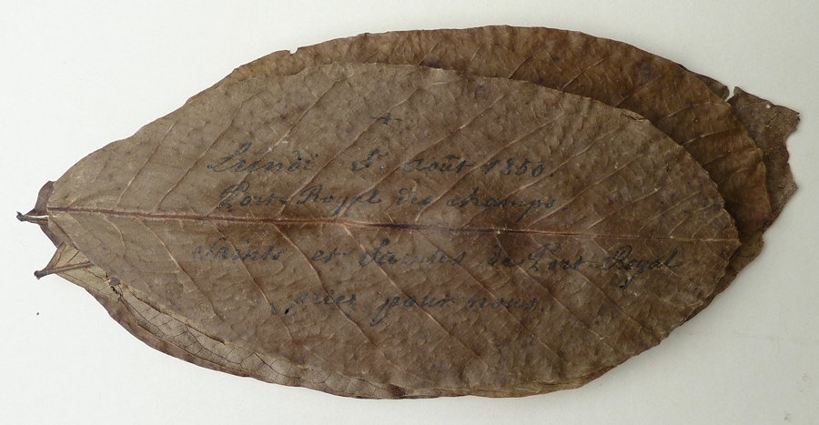 Enkele bladeren met "Saints et Sants de Port-Royal priez pour nous"