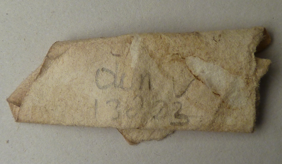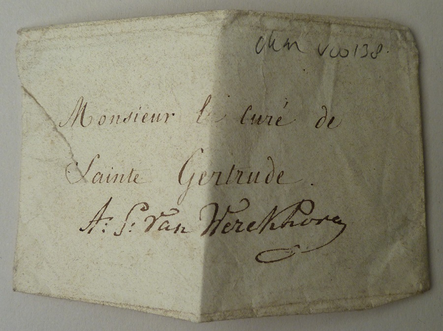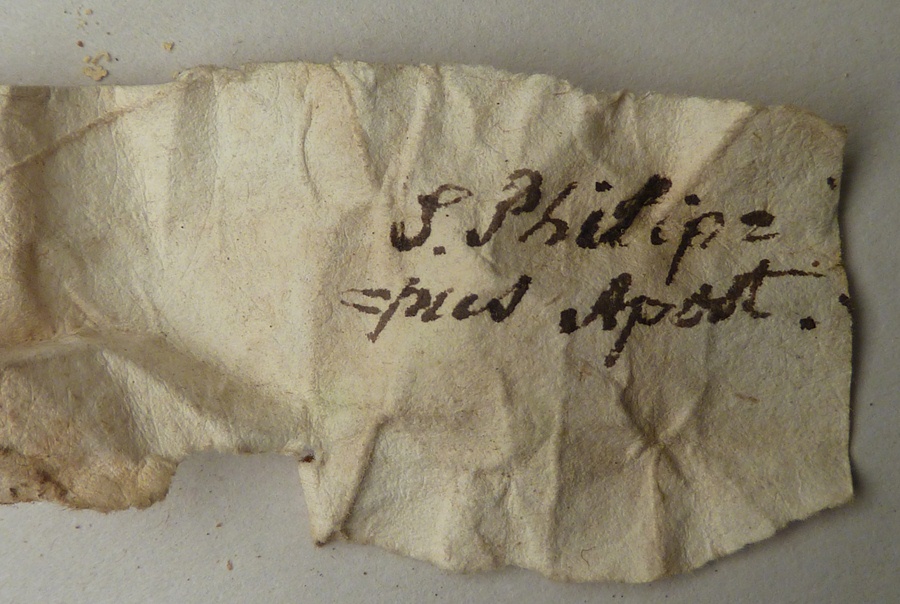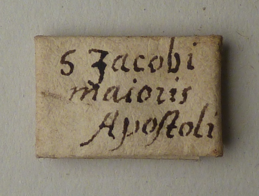 Diverse relieken in papiertjes gewikkeld