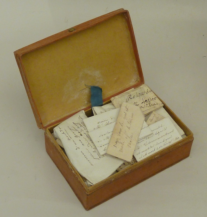 Diverse relieken van personen en zaken die verband houden met Port-Royal, in kartonnen doosje