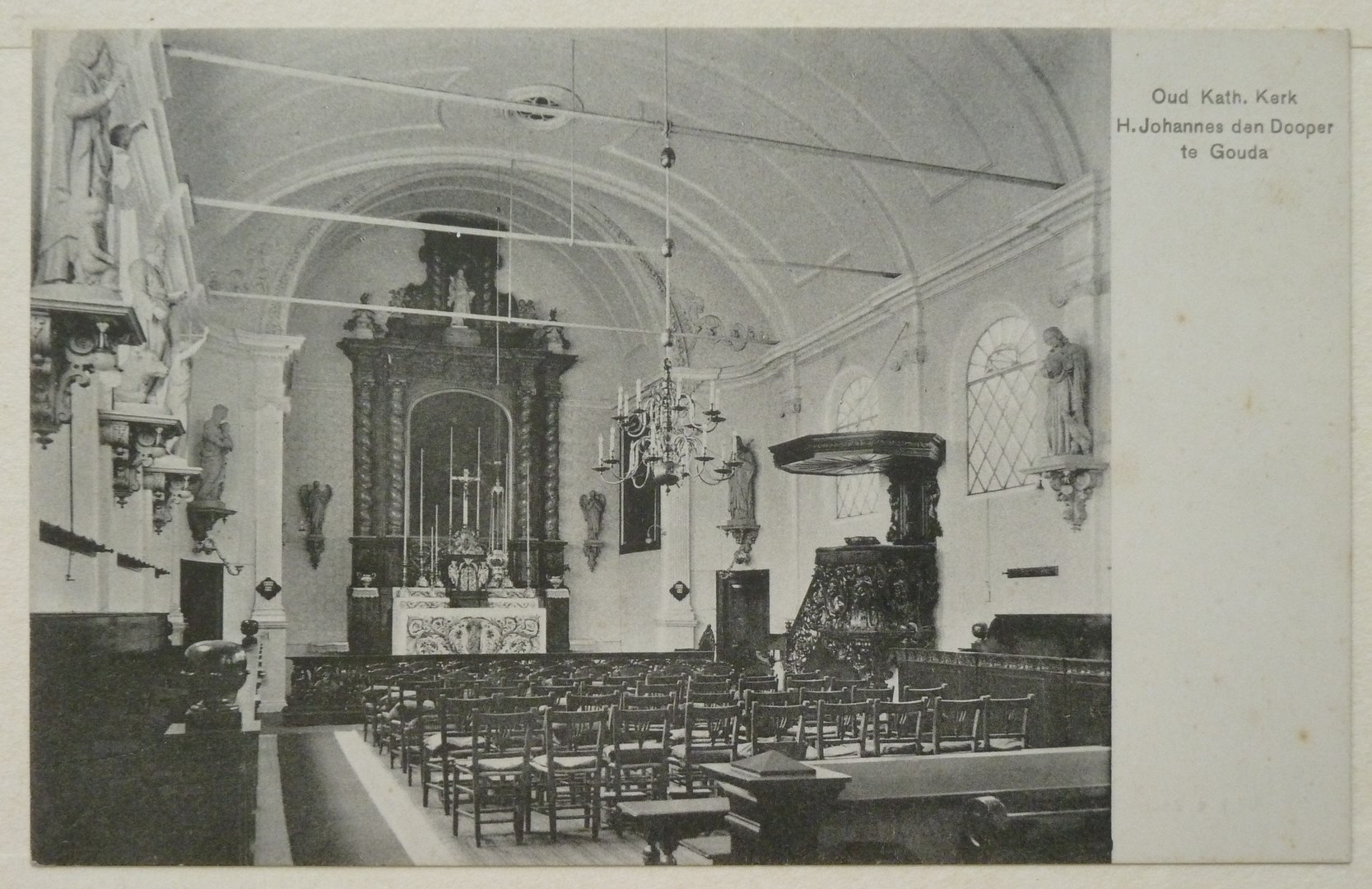 Prentbriefkaart met oud-katholieke kerk H. Johannes de Doper aan de Gouwe te Gouda