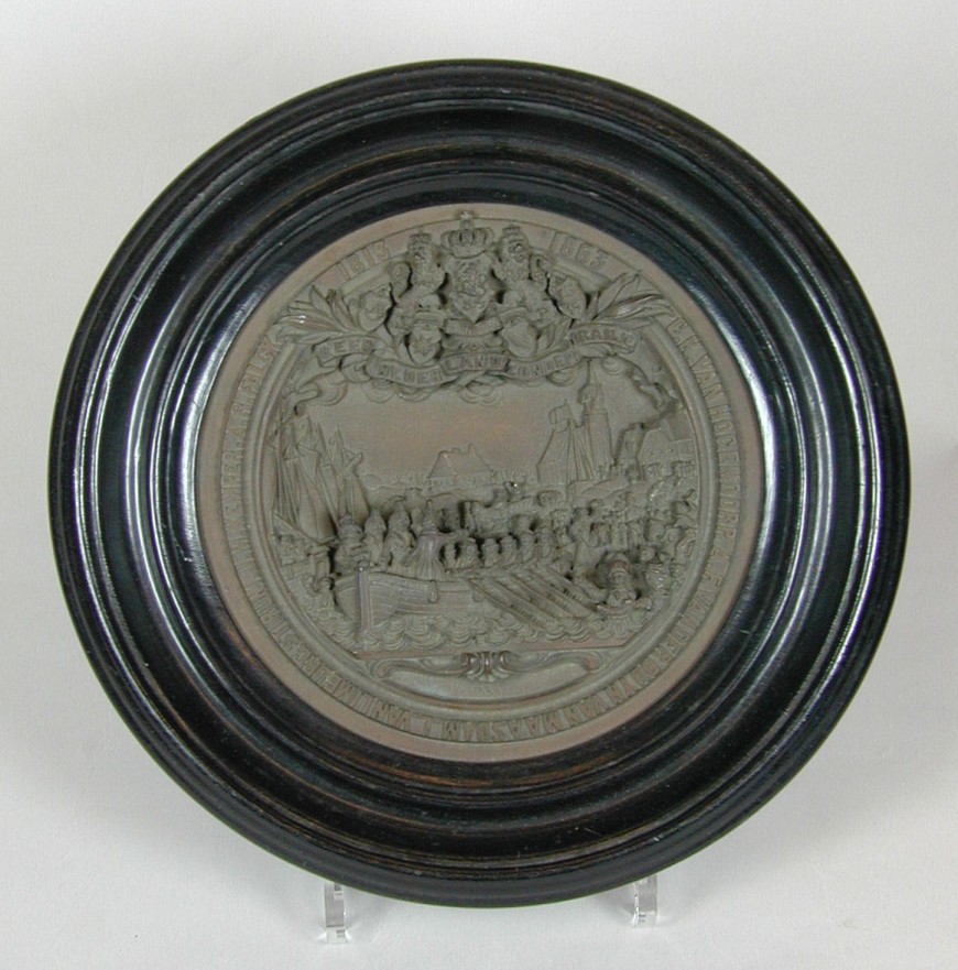 Herdenkingsbord met landing van Willem I te Scheveningen in 1813 "Geen Nederland zonder Oranje"