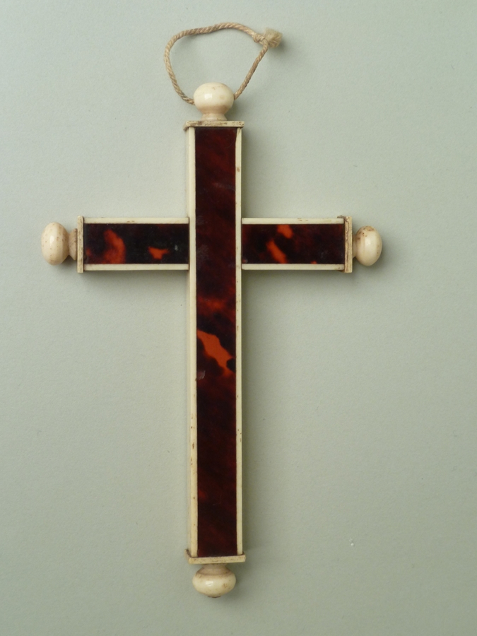 Kruisje bekleed met schildpad met ivoren knoppen en zijkanten