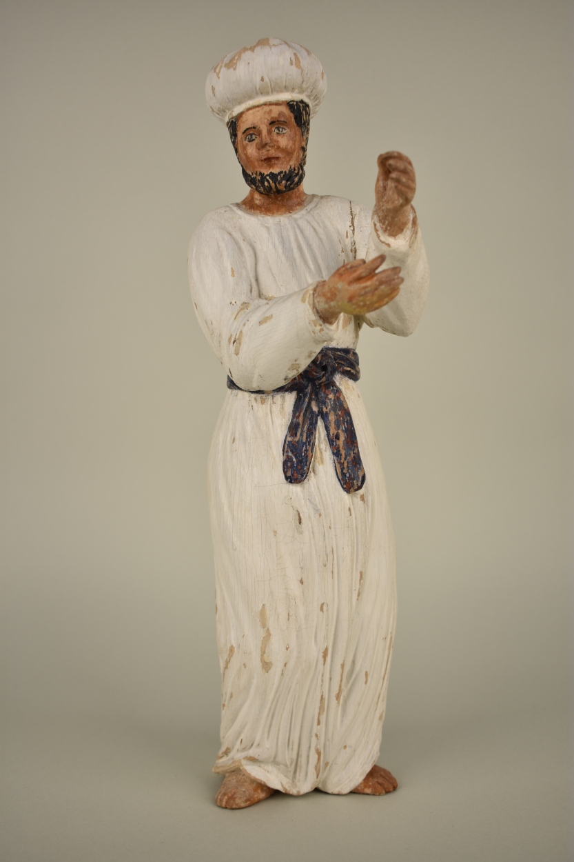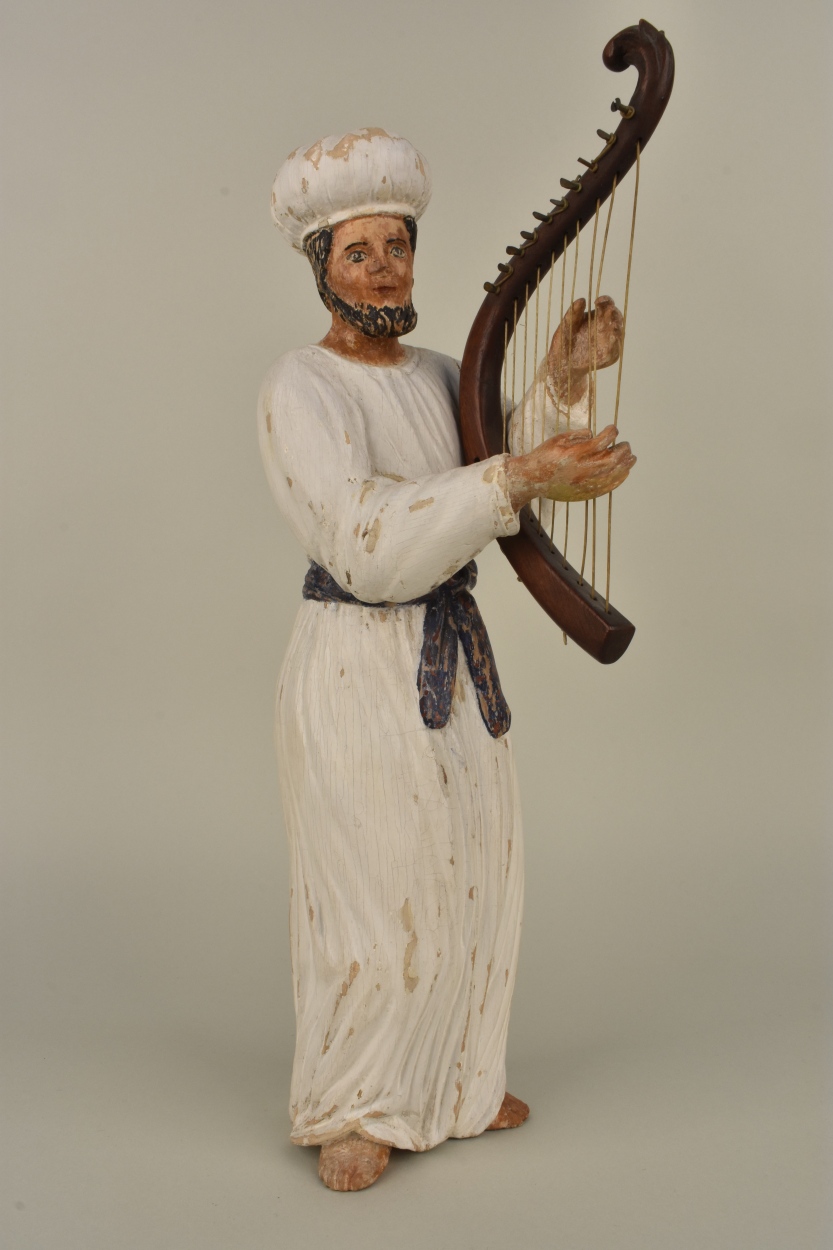 Model van de tabernakel: leviet Mattitja, met harp