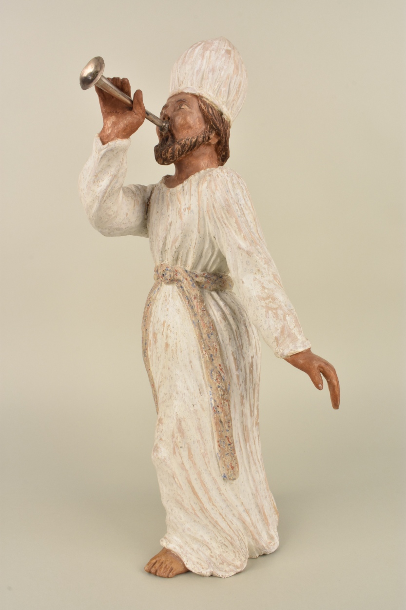 Model van de tabernakel: priester met zilveren trompet