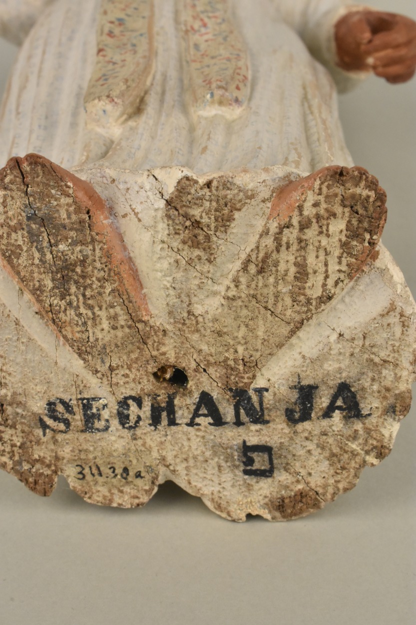 Aan de onderkant van het beeld staat de naam Sechanja en een Hebreeuws teken.