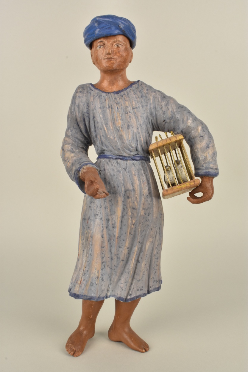 Model van de tabernakel: herstelde melaatse Israëlitische man, met hoofddeksel, kooi met duiven en schaal met spijsoffer