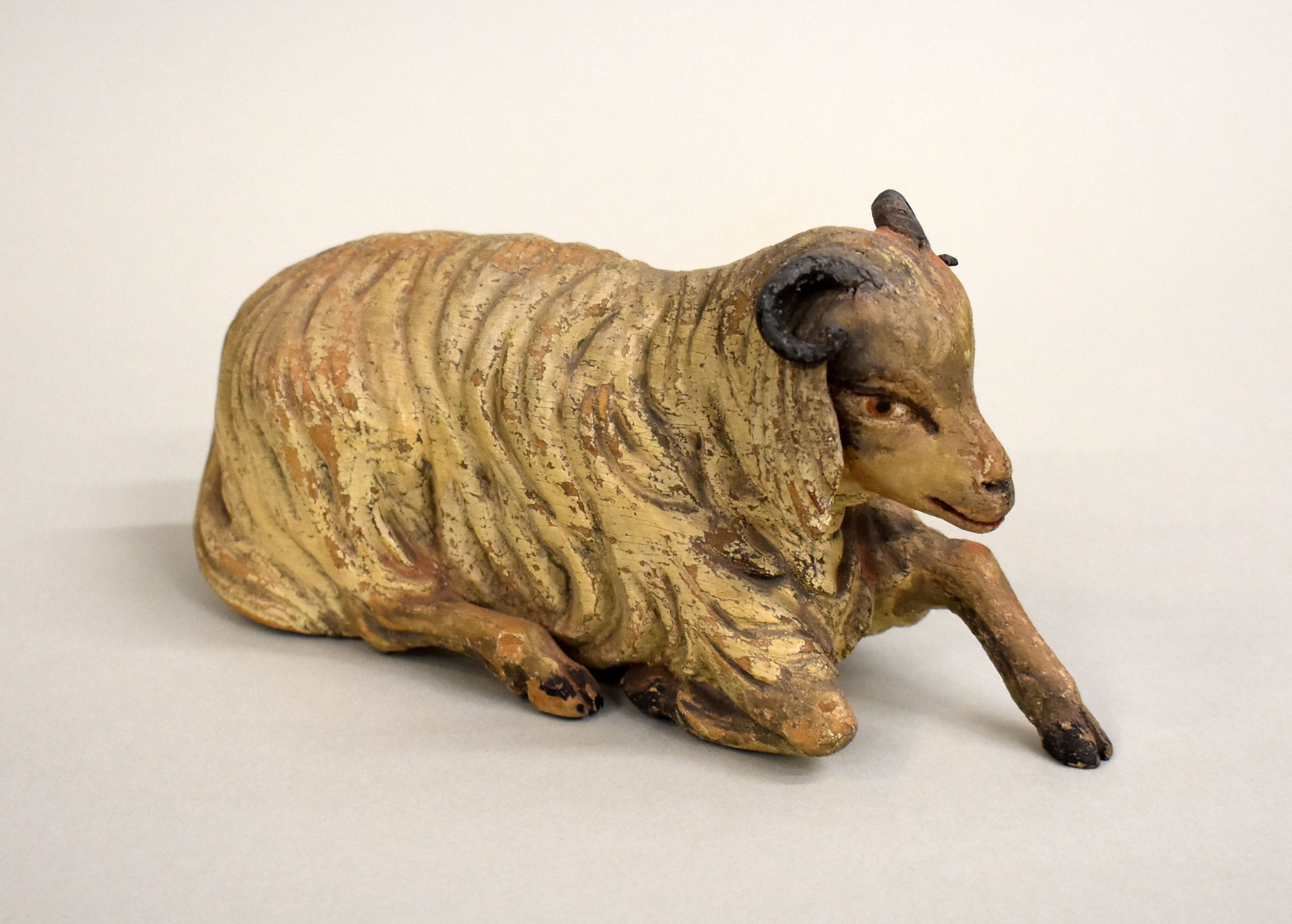 Model van de tabernakel: liggende witte ram in de stallen in de voorhof van de tabernakel, offerdier