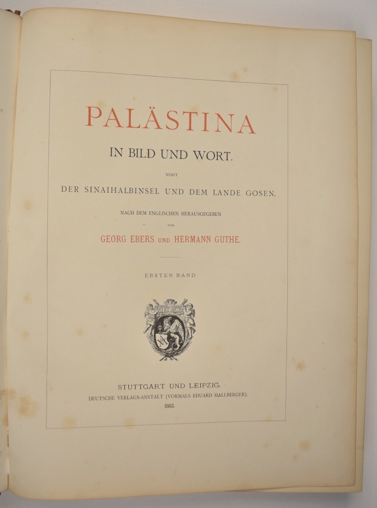 Palästina in Bild und Wort, nebst der Sinaihalbinsel und dem Lande Gosen. nach dem Englischen herausgegeben von Georg Ebers und Hermann Guthe. erster Band
