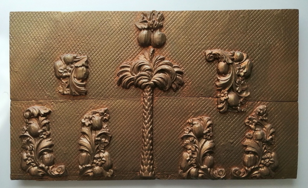Onbekend architecturaal onderdeel van de Tempel van Salomo model Mill: gouden achterwand met centraal een palmboom