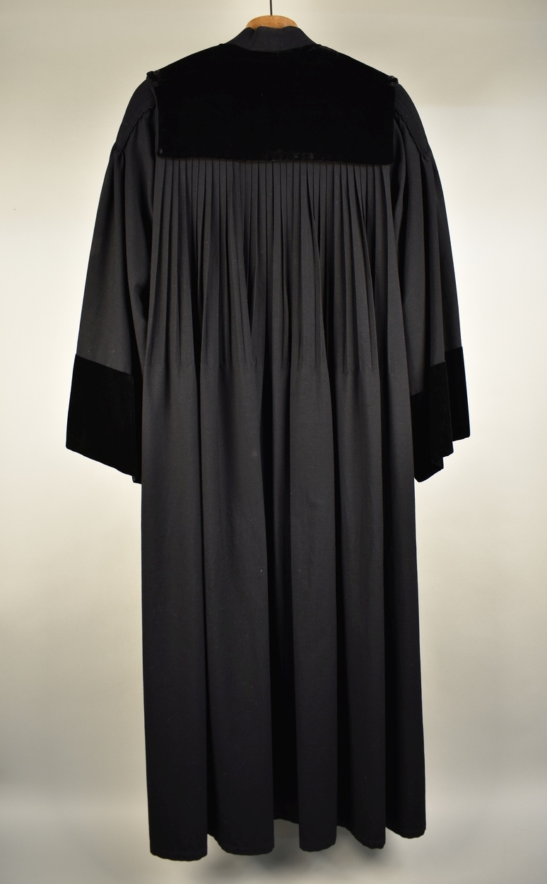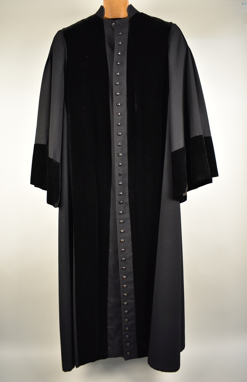 Zwarte toga van ds. Tjibbe Bijlsma (1930-2004), vanaf 2002 tot 2020 geëxposeerd in het Schoutenkabinet van Bijbels Museum te Amsterdam