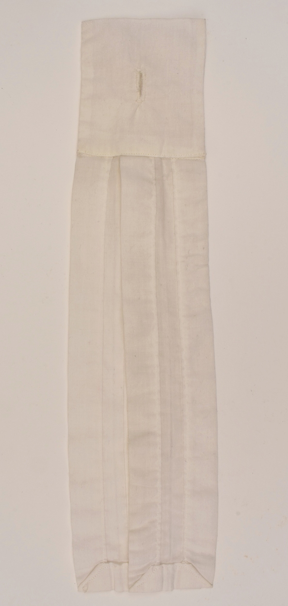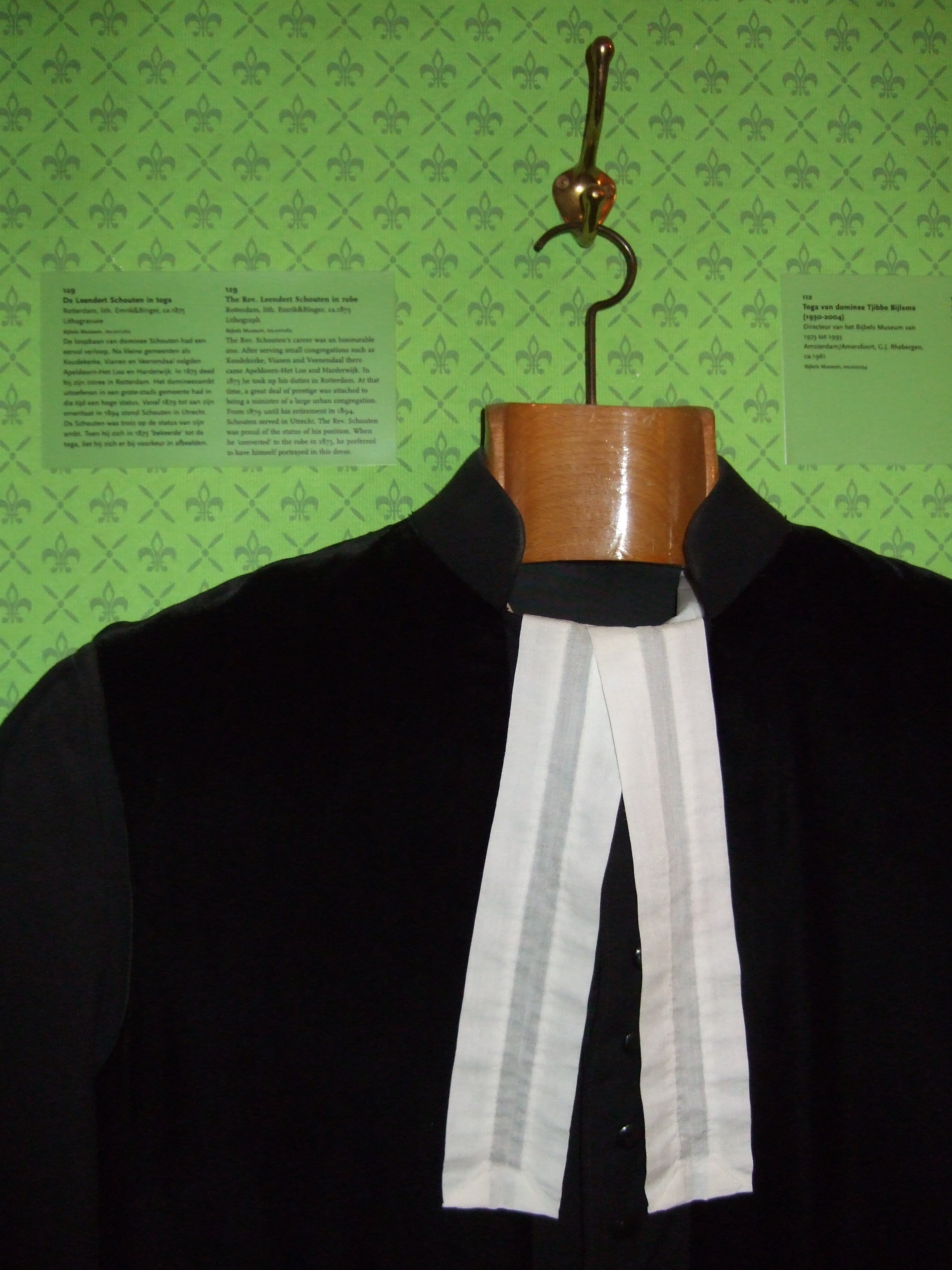 Witte bef, behorend bij toga van Tjibbe Bijlsma (1930-2004), vanaf 2002 tot 2020 geëxposeerd in het Schoutenkabinet van Bijbels Museum te Amsterdam