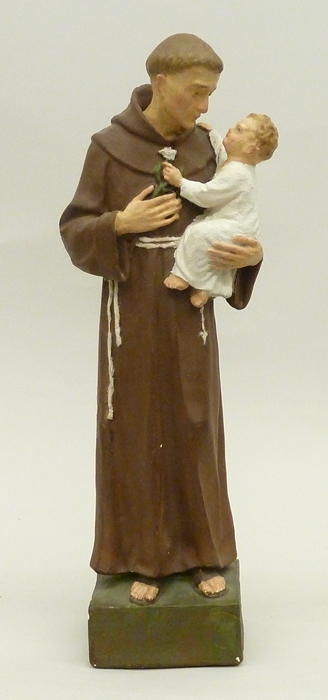 Antonius van Padua in franciscaans habijt, met Christus op linkerarm, in rechterhand lelietak