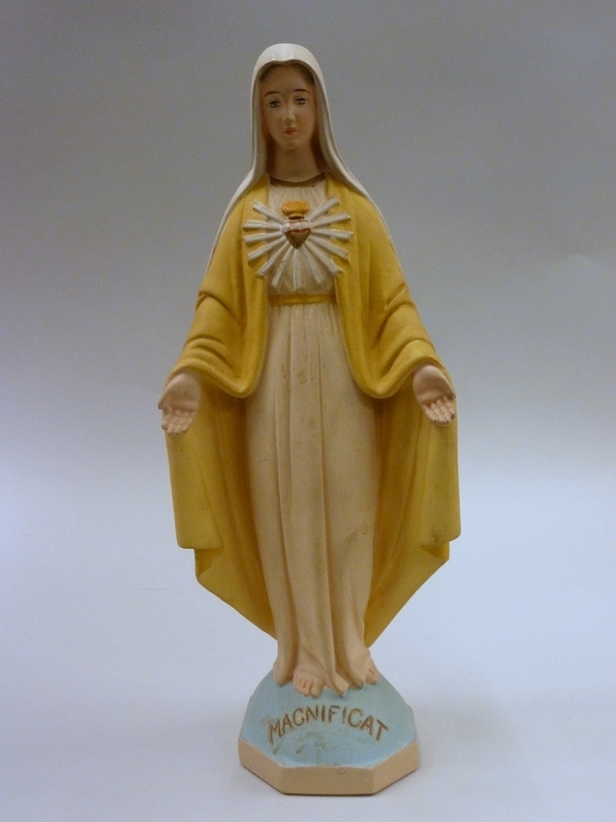 Maria met brandend hart met doornenkroon en stralenkrans op borst, gespreid hangende armen