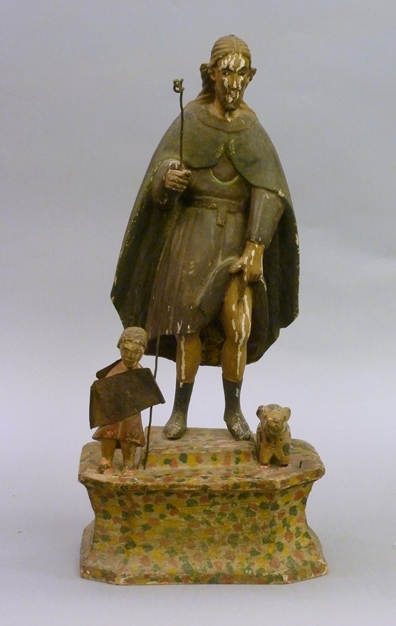 Rochus, met (los) hondje en engel, staande op gestippelde sokkel