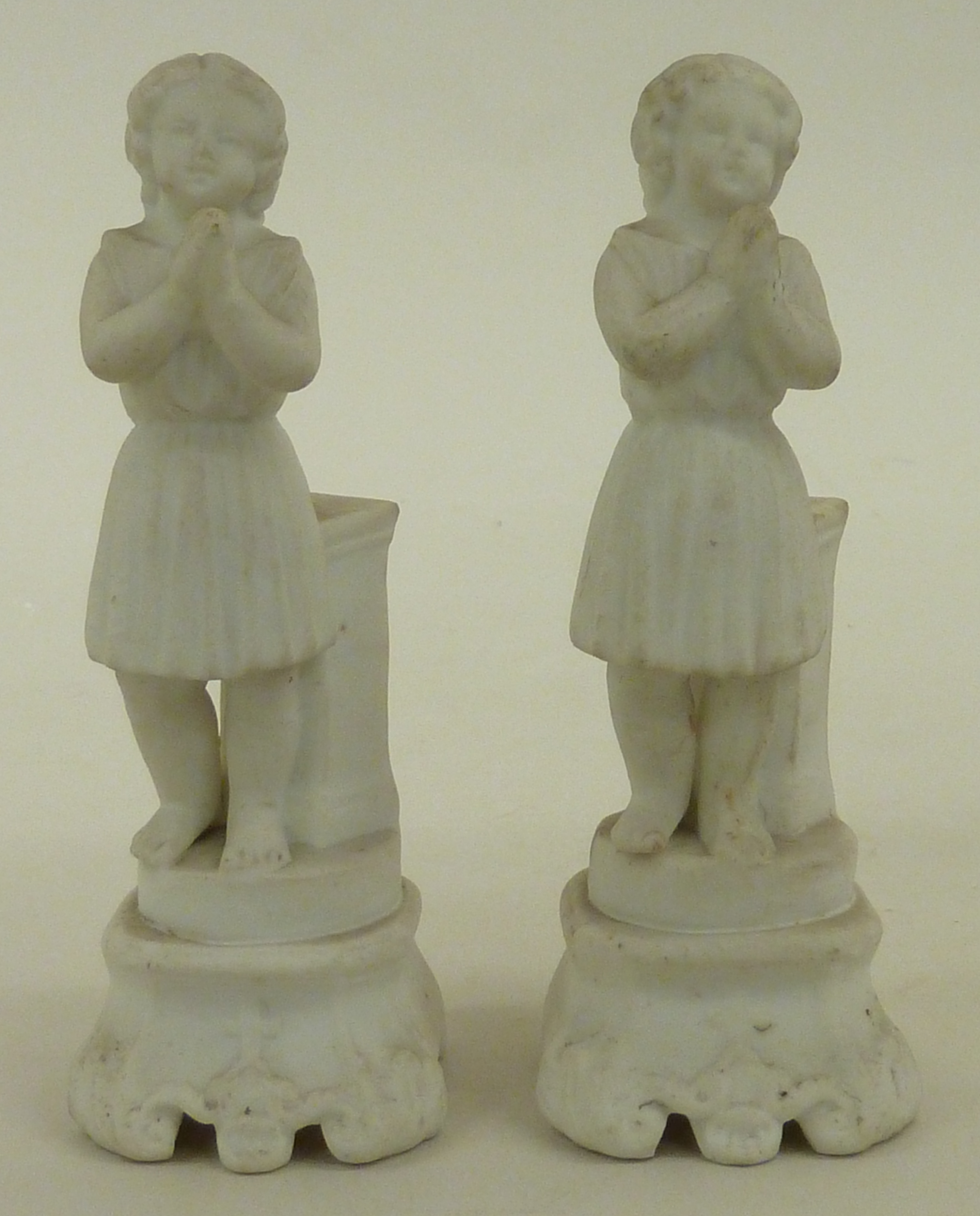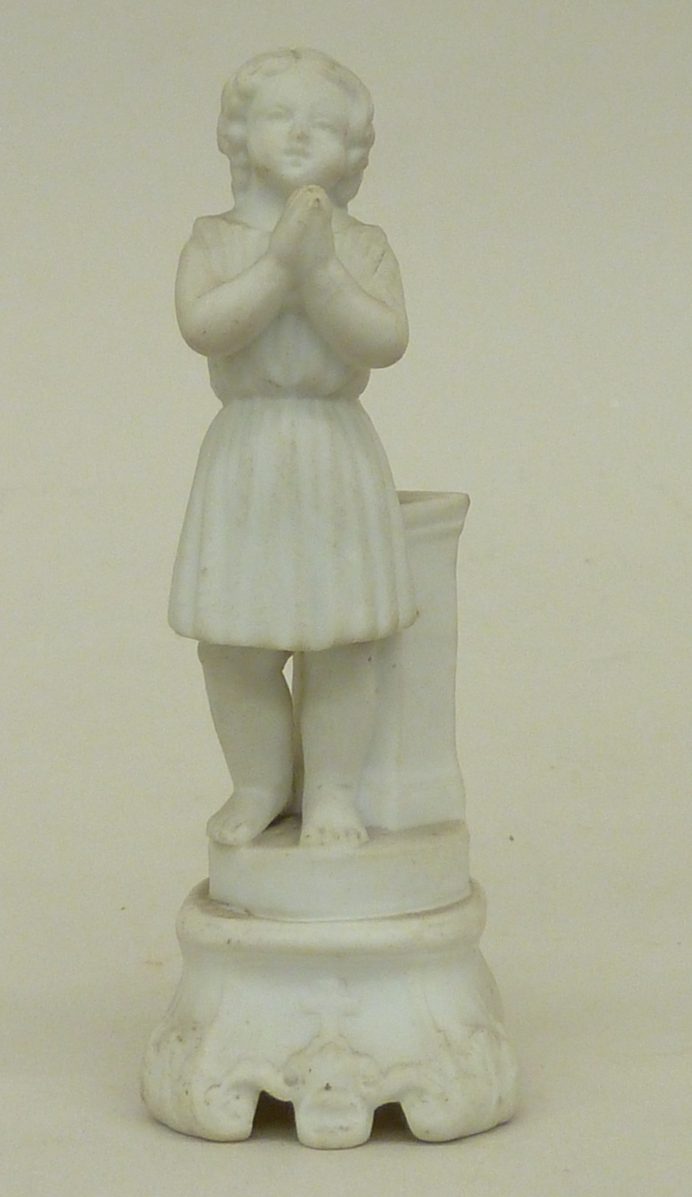 Engeltje in tuniek met gevouwen handen, vleugels afgebroken