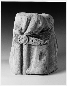 Fragment van apostelfiguur(?): gewaadfragment met riem