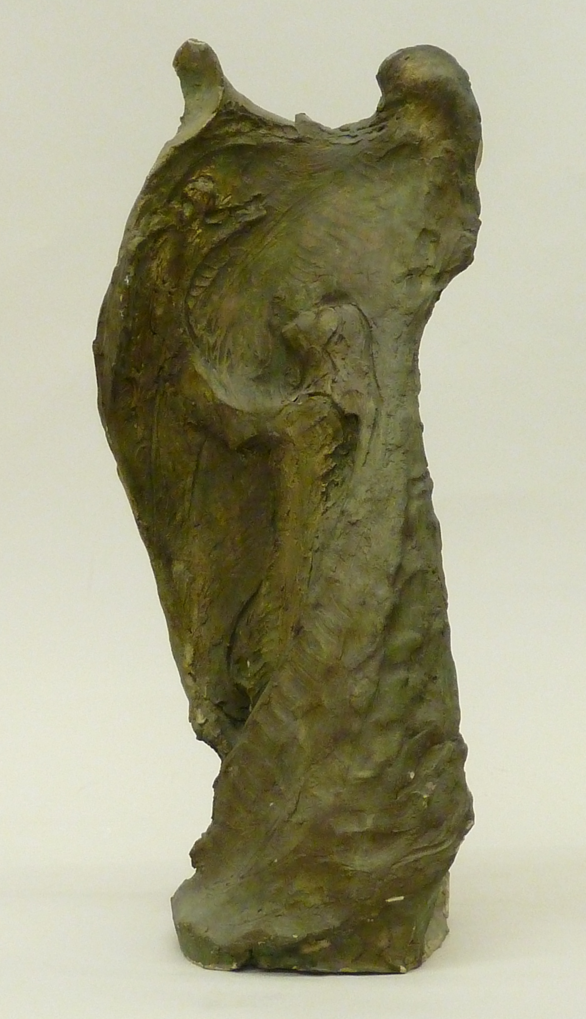 Staande vrouw en profil met een kruisbeeld in haar handen