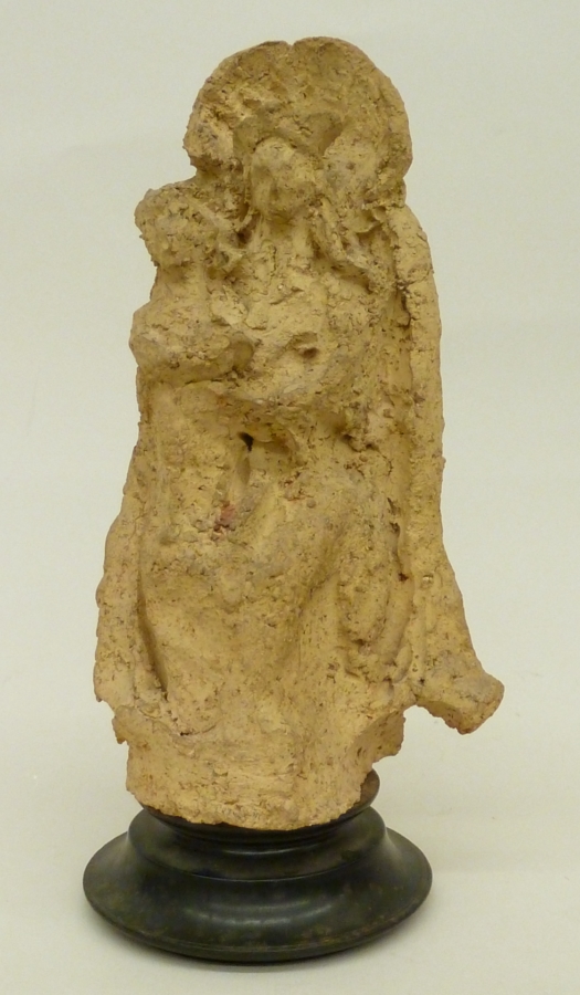 Zittende Maria met kind op schoot, op sokkel