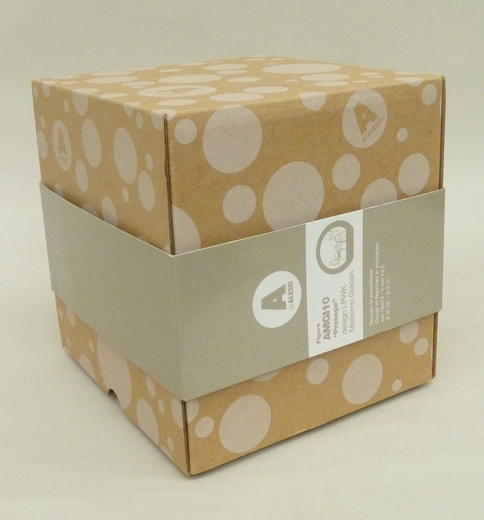 Kartonnen doos met stippen met "Presepe" voor kerstgroep RMCC b265a t/m f