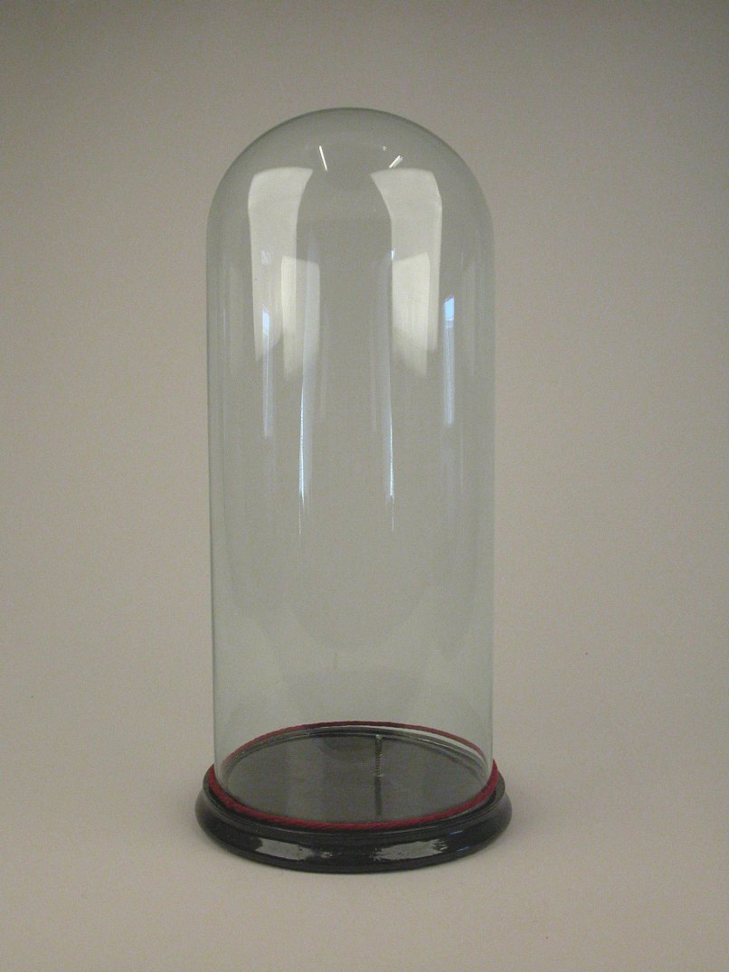 Ronde glazen stolp op zwarte voet waaruit schroef steekt voor RMCC b273a
