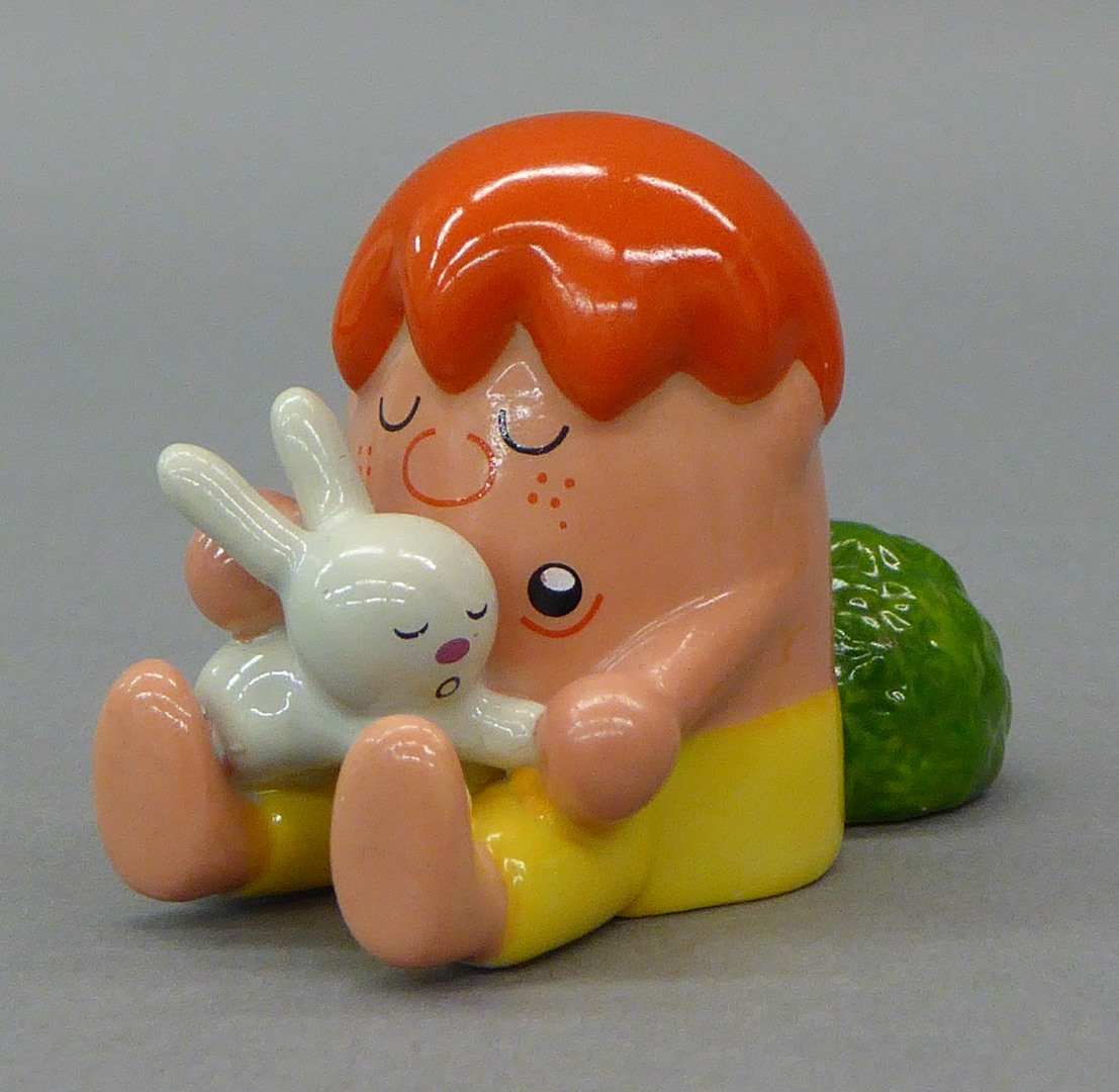 Zittende figuur 'Giovannino Pisolino' met konijn op schoot