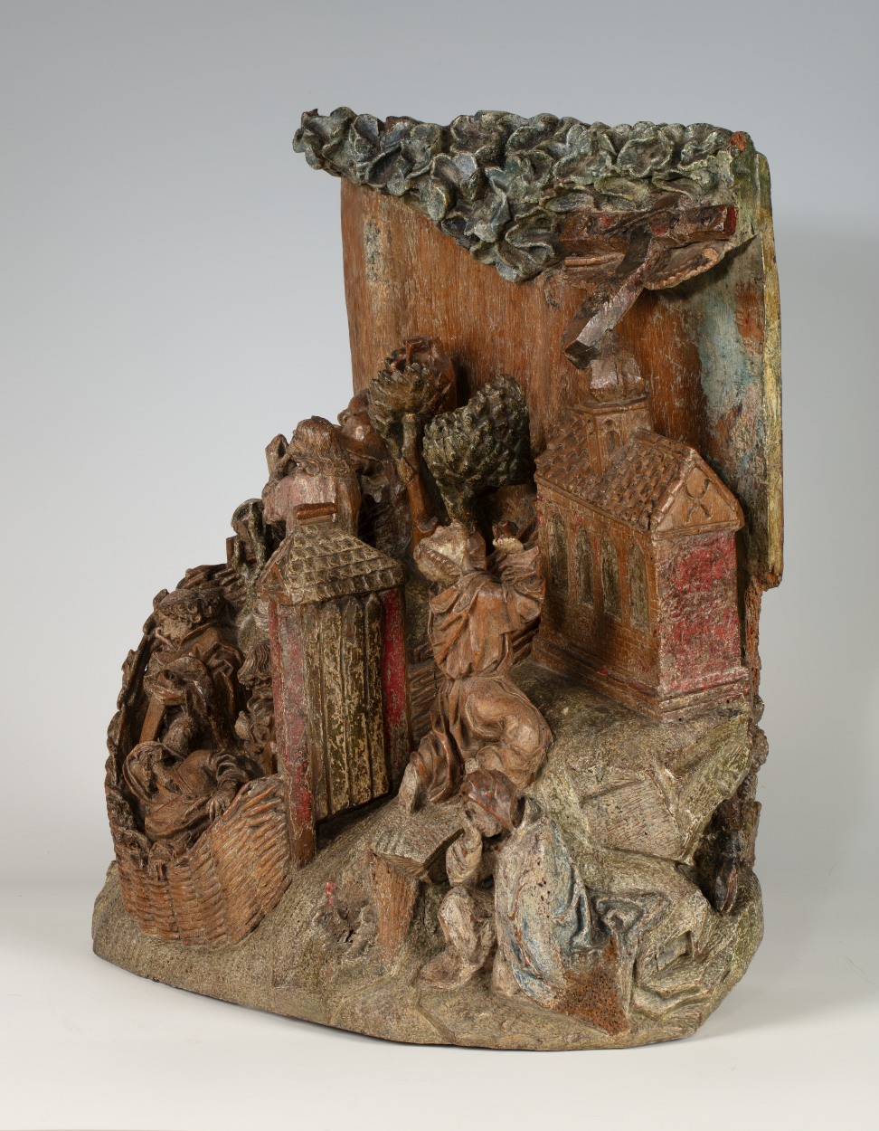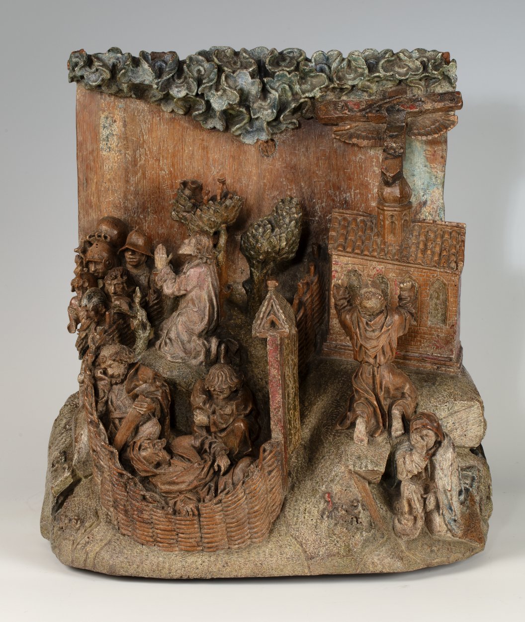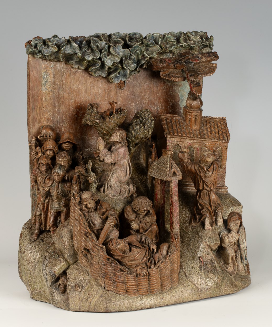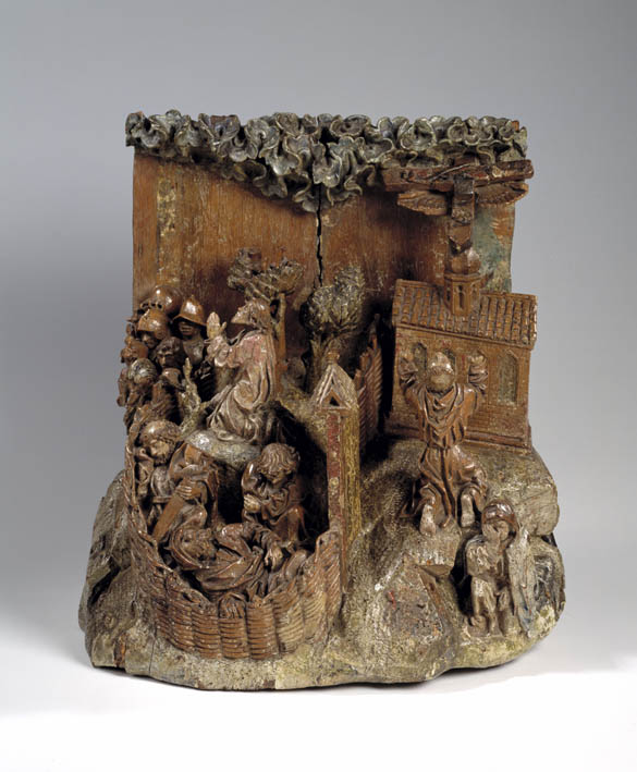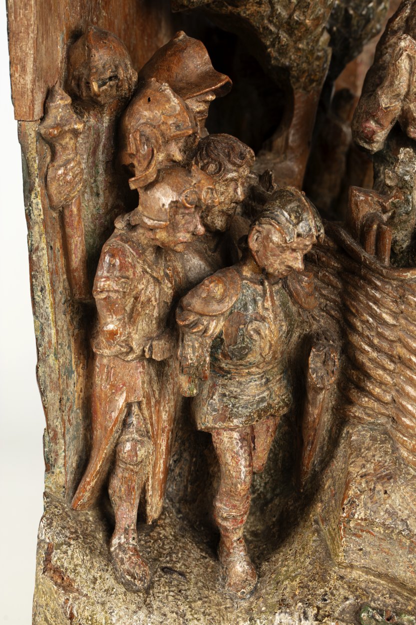 Op het linkerdeel van het reliëf is Christus in de Hof van Olijven afgebeeld, op het rechtergedeelte Franciscus die de stigmata ontvangt. In de omheinde Hof van Olijven is in het midden van de voorstelling de naar links geknielde, in gebed verzonken Christus afgebeeld. Hij heeft zijn handen in gebed gevouwen en kijkt omhoog, waarschijnlijk ...