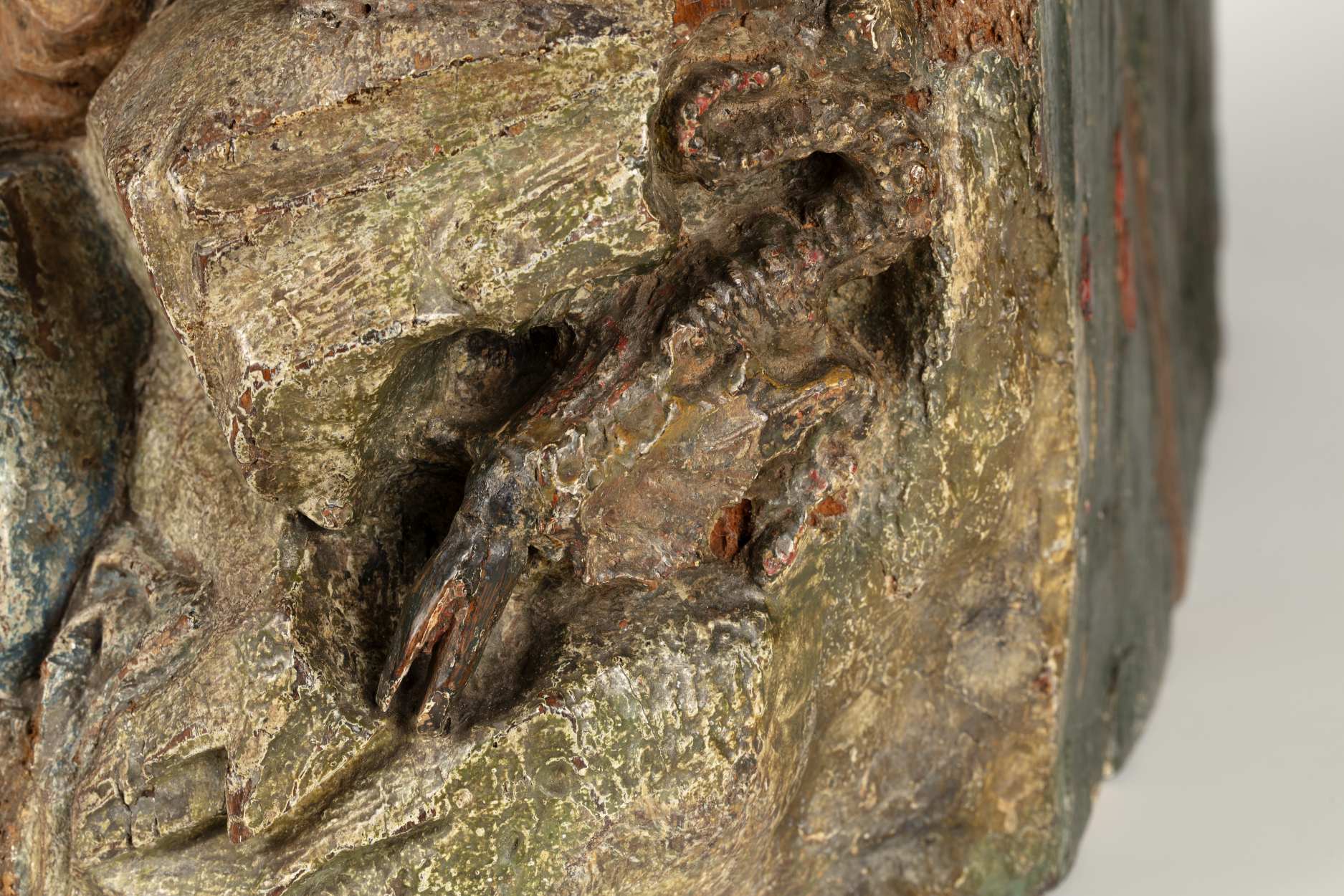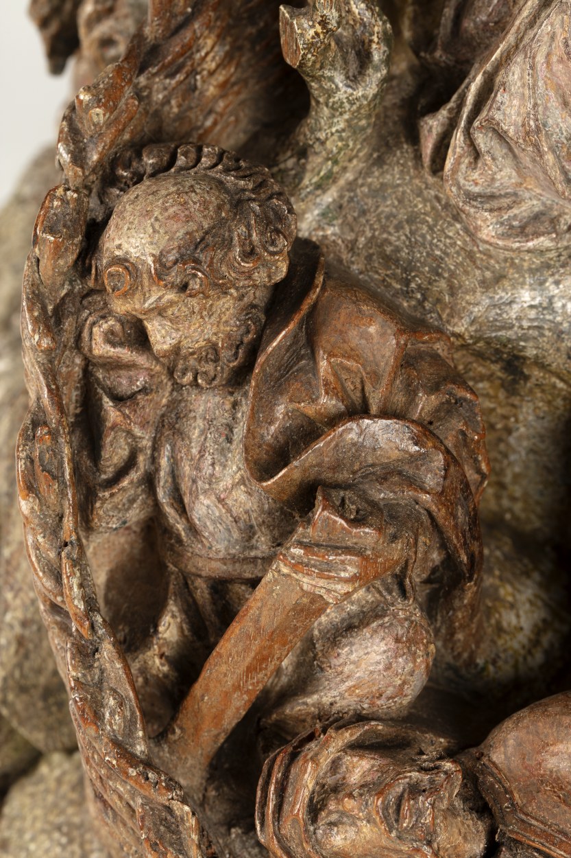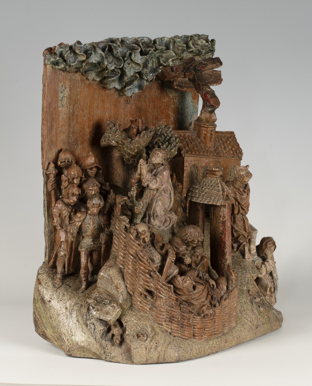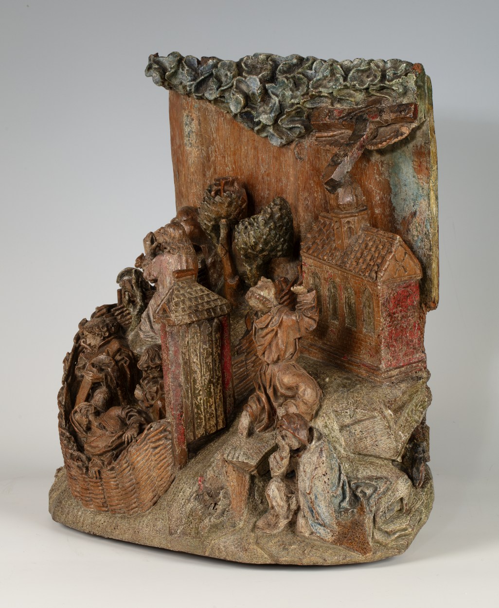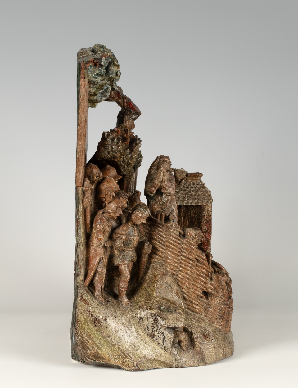 Op het linkerdeel van het reliëf is Christus in de Hof van Olijven afgebeeld, op het rechtergedeelte Franciscus die de stigmata ontvangt. In de omheinde Hof van Olijven is in het midden van de voorstelling de naar links geknielde, in gebed verzonken Christus afgebeeld. Hij heeft zijn handen in gebed gevouwen en kijkt omhoog, waarschijnlijk ...