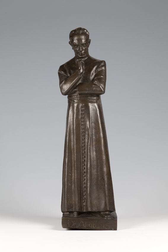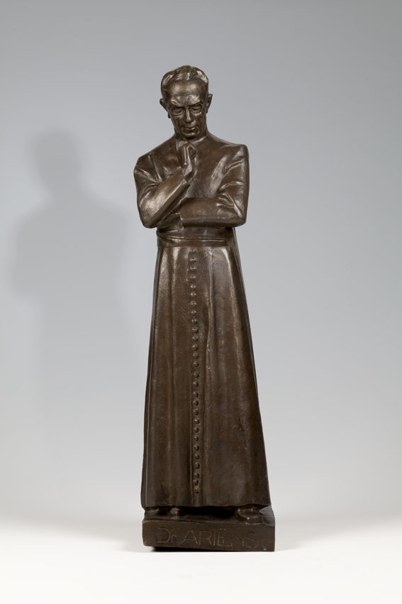 Staande Alphons Ariëns (1860-1928), met opschrift, replica naar standbeeld in Enschede