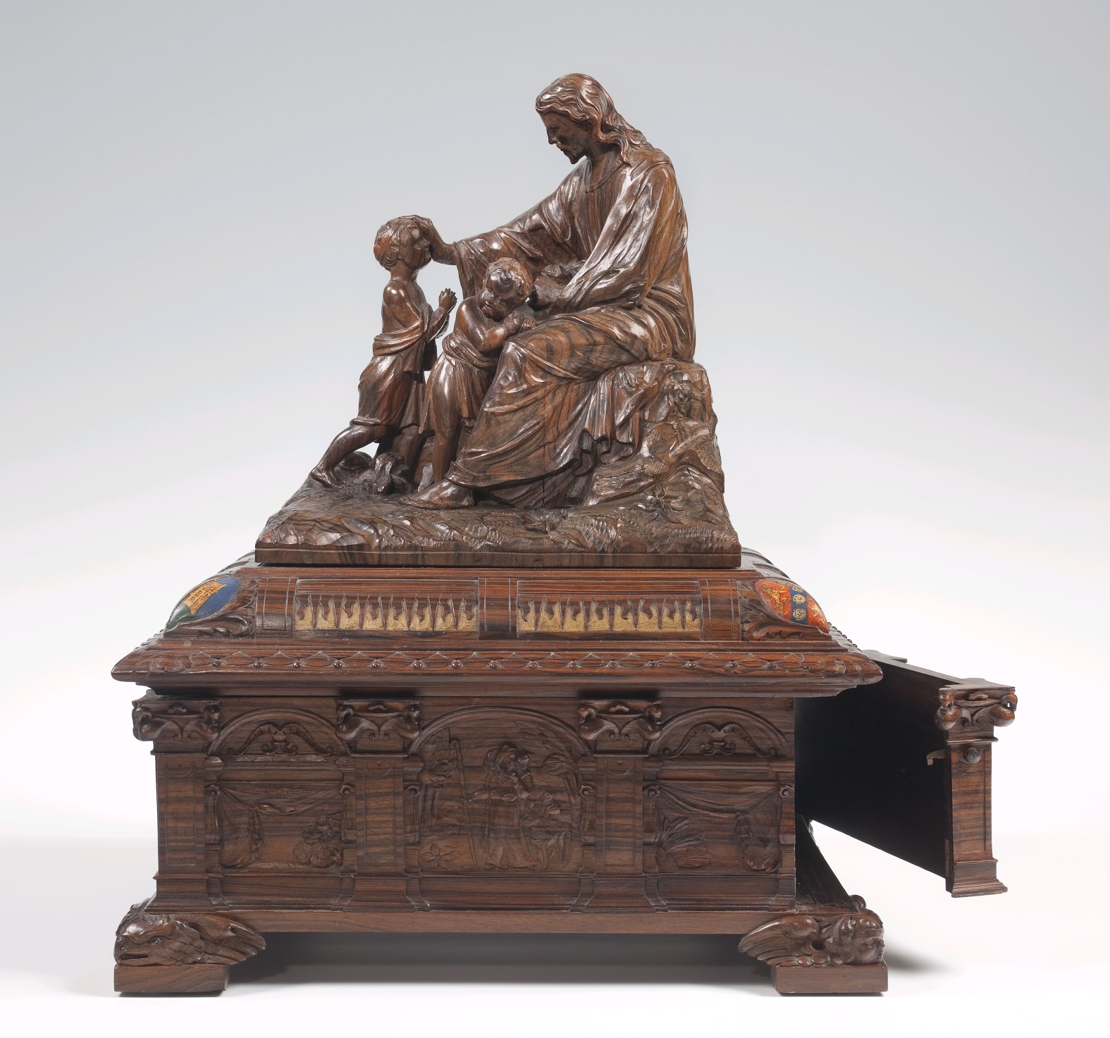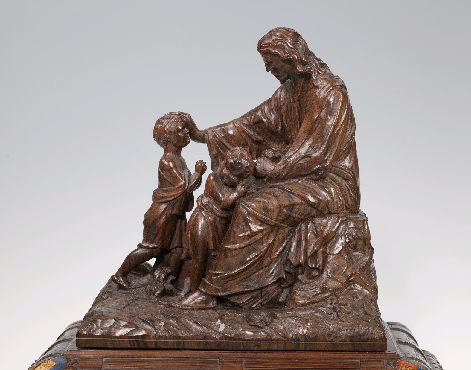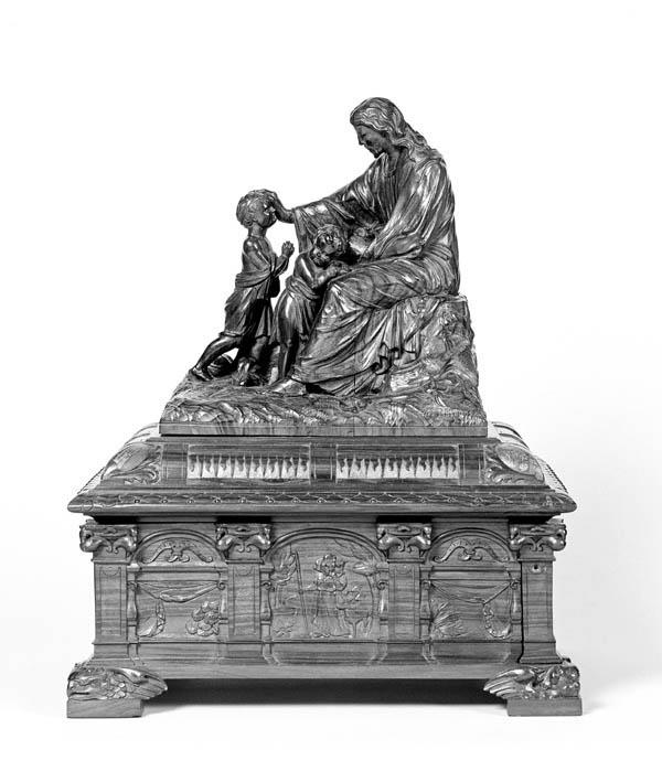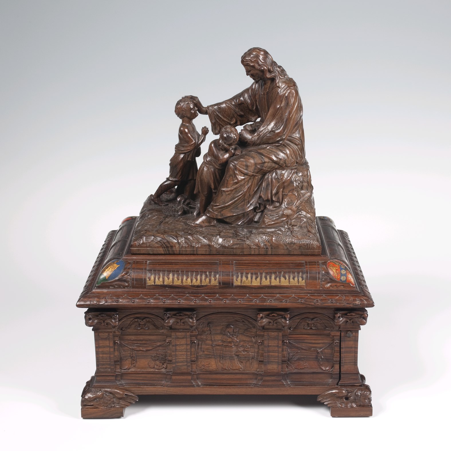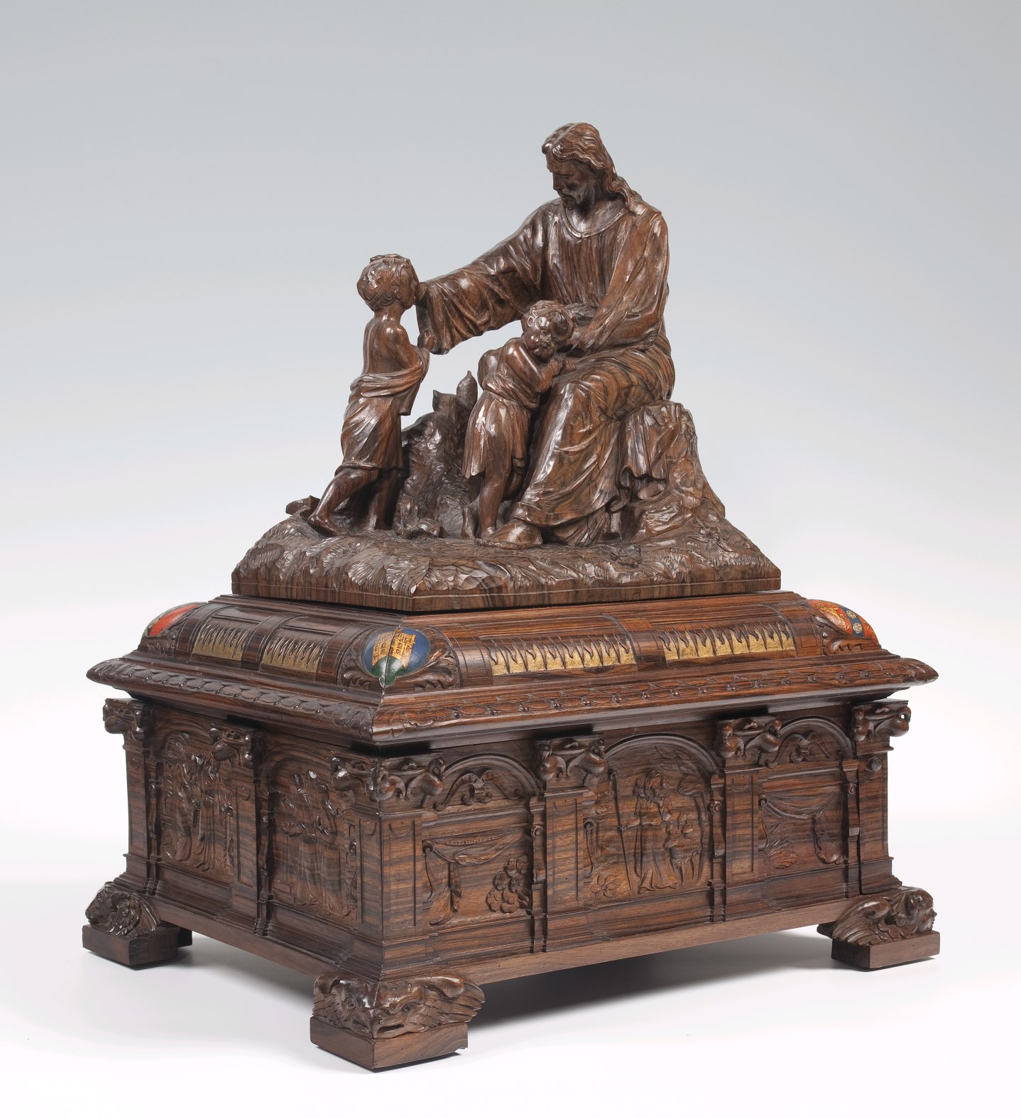 Kistje voor 25-jarig jubileum ds. H. Pierson, 1902, met Christus en twee kinderen