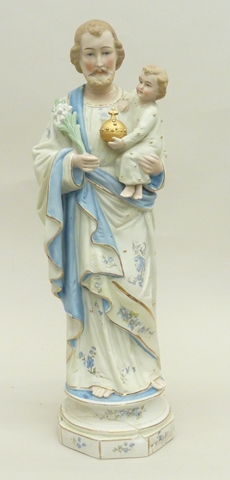 Staande Jozef met Christuskind op linkerarm, rijksappel, lelietak