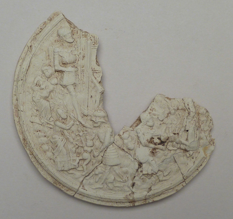 Gedeelte rond reliëf zonder omlijsting met kindermoord te Bethlehem, vondst Leiden