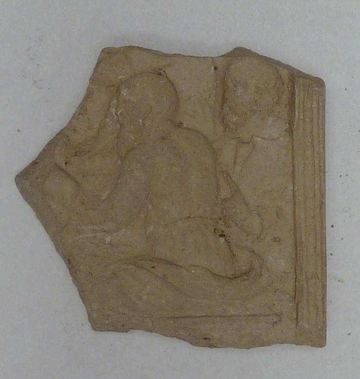 Gedeelte rechterzijkant reliëf met laatste avondmaal, vondst Delft, 1969