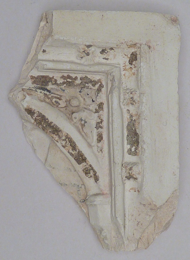 Hoek reliëfomlijsting met deel gotische boog, vondst niet gedocumenteerd