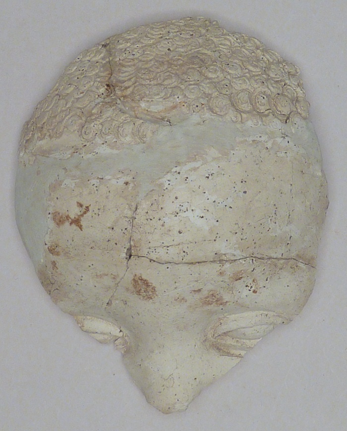 Eerste fragment van twee, groot Christuskind, bovendeel hoofd, vondst Gorinchem, 1979