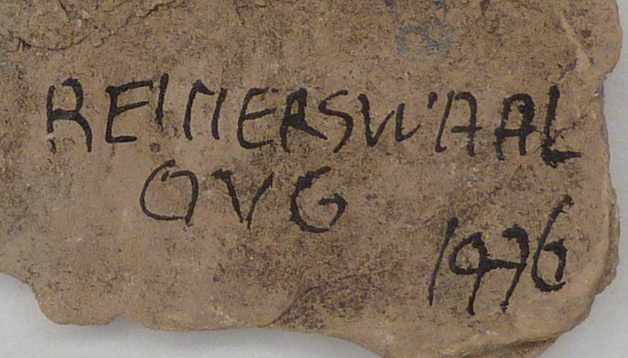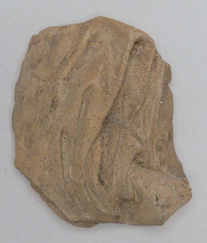 Fragment Mariabeeld, linkerschouder, met wijd geplooide mouw van mantel, vondst Reimerswaal