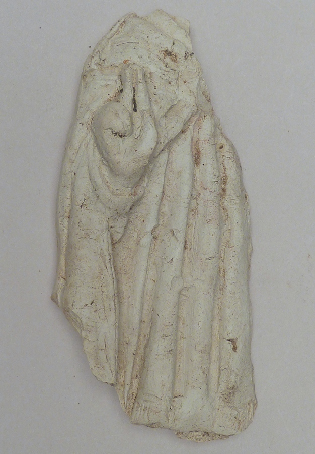Fragment van H. bisschop(?), rechterschouder met afhangende cape, vondst Keulen, 1969