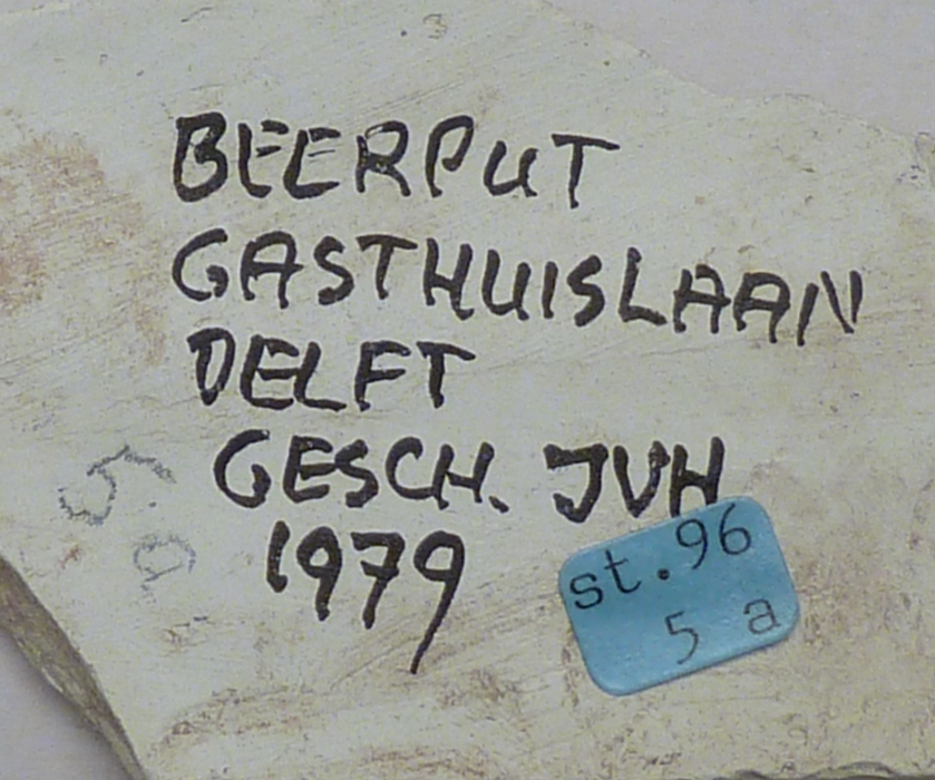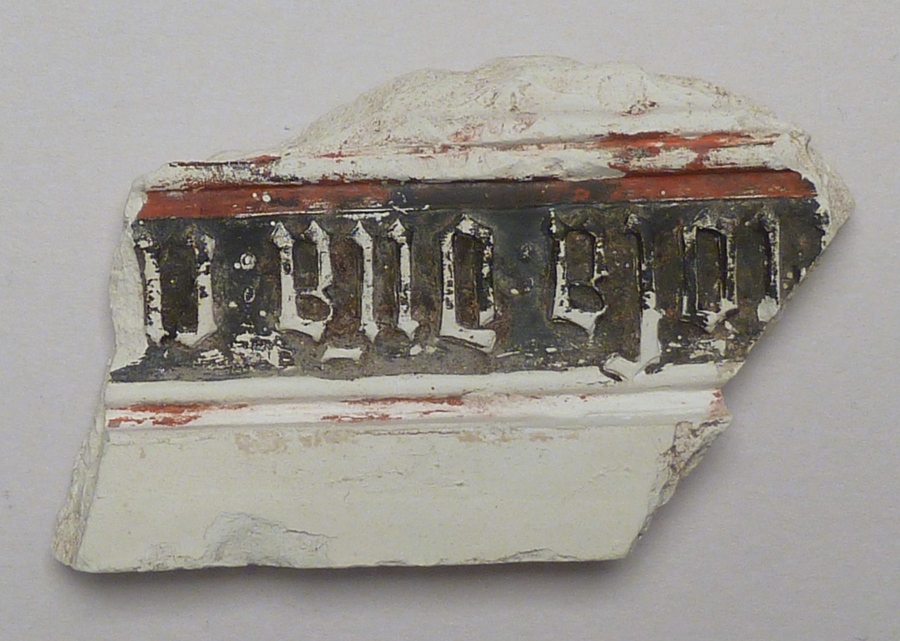 Fragment reliëflijst met tekst, vondst Delft