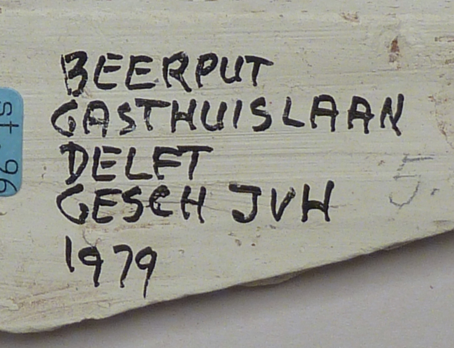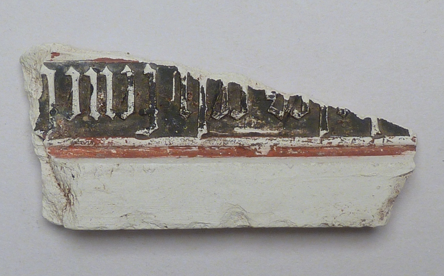 Fragment reliëflijst met tekst, vondst Delft