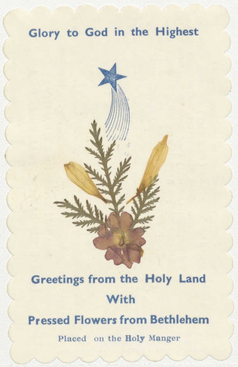 Groeten uit het Heilig Land met droogbloemen uit Bethlehem (Engels)