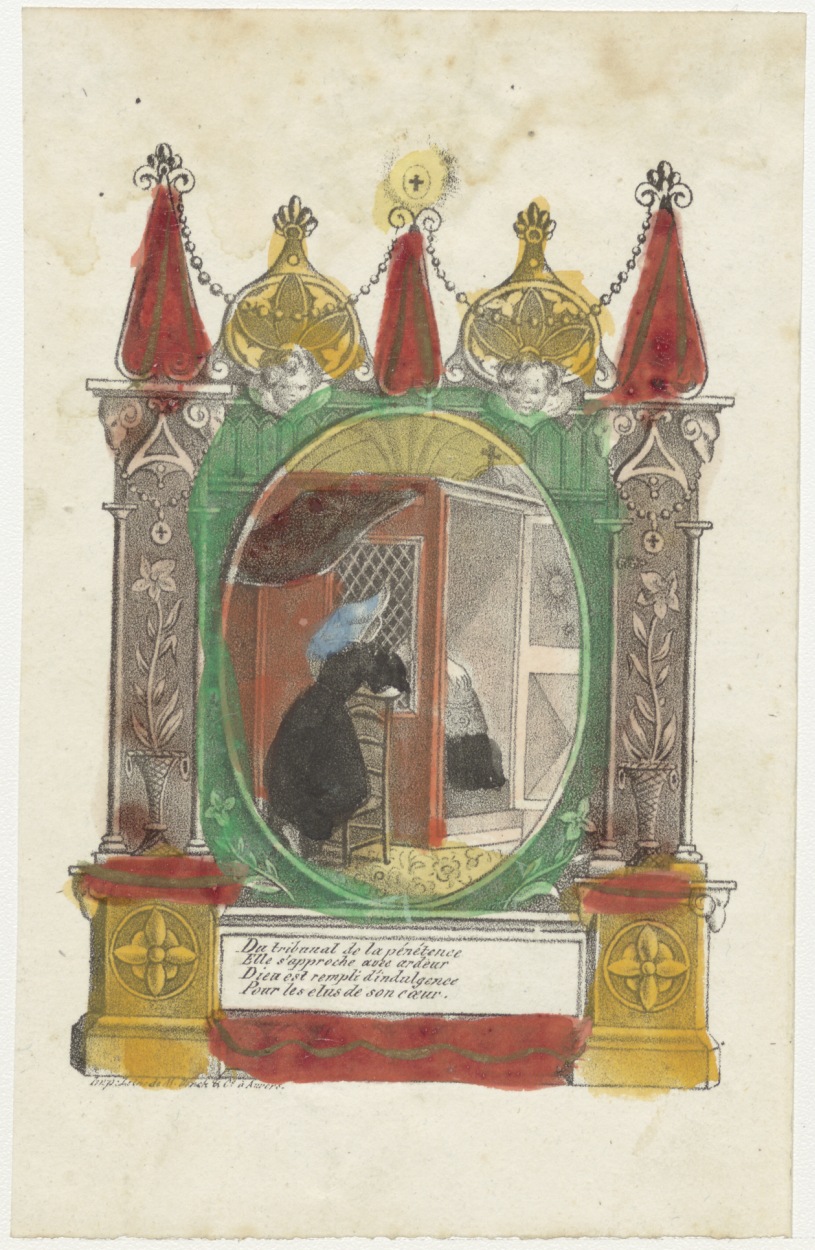 Non in biechtstoel (Frans), ingekleurd