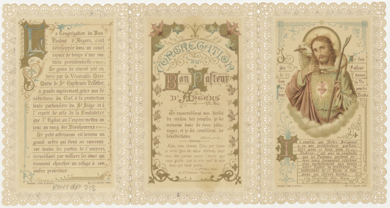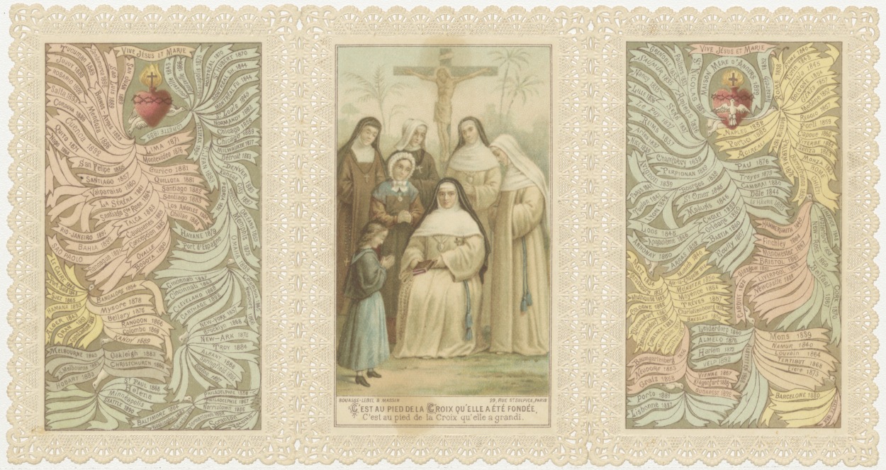 Congregatie van de Goede Herder van Angers, met tekst en plaatsnamen met stichtingsjaren