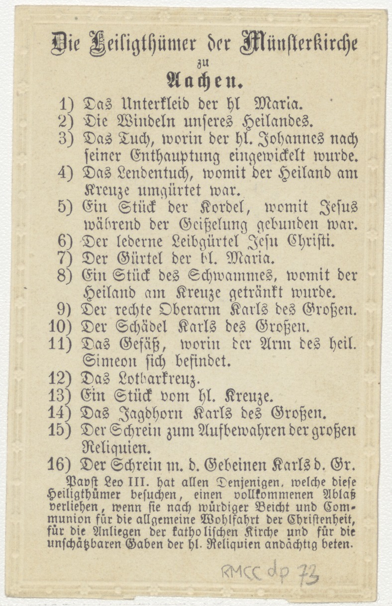 Relieken van de Dom van Aken (Duits), kz. legenda