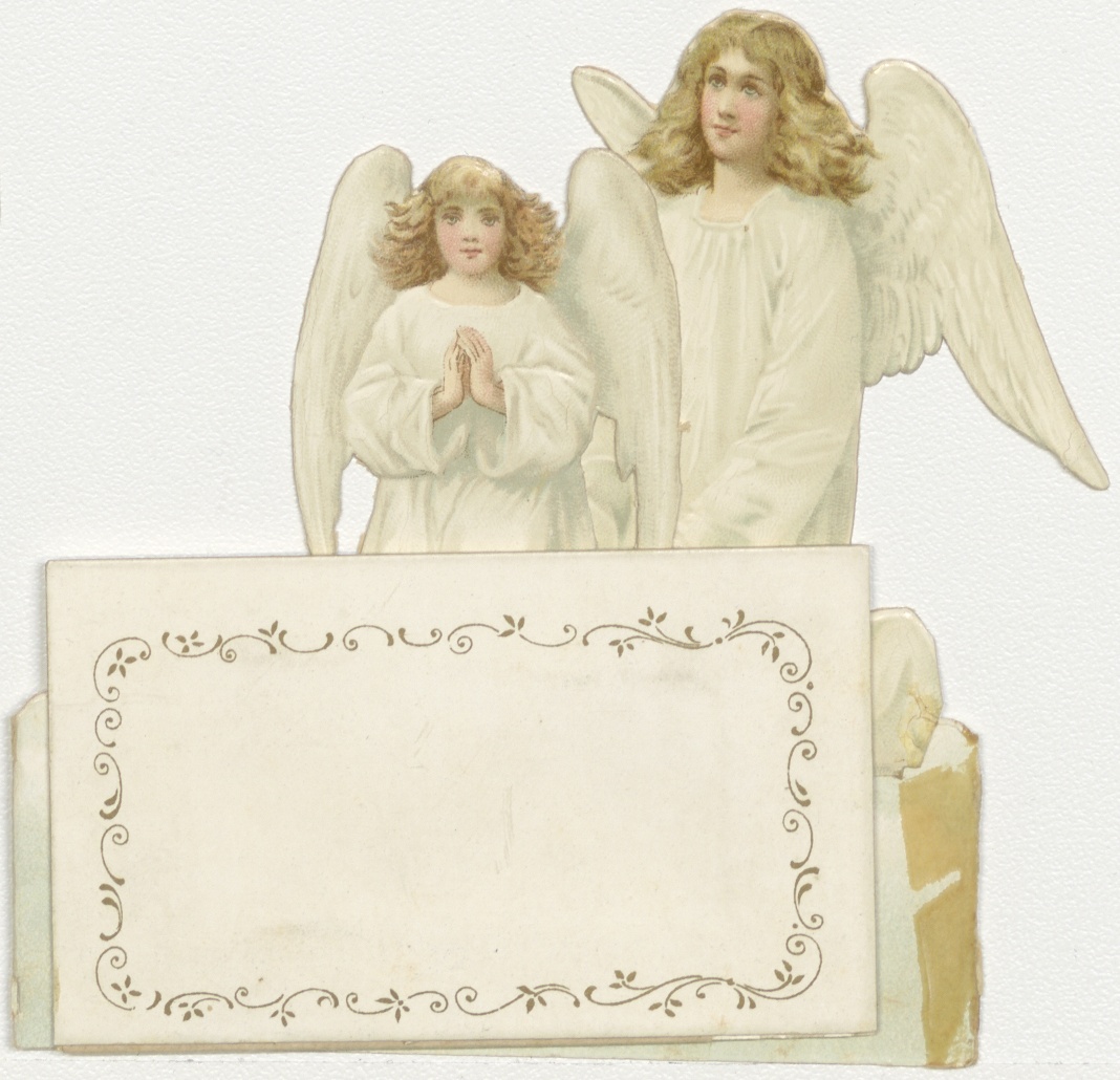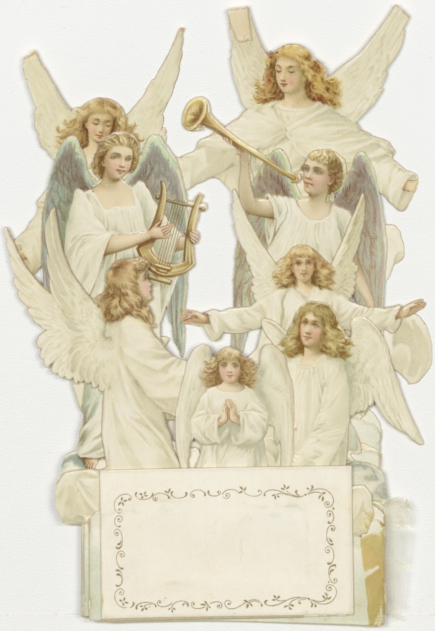 Uitklapprent van een rij van acht engelen, Eerste Communiegeschenk