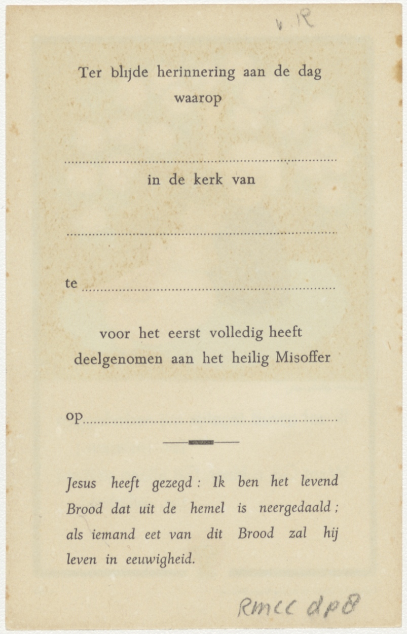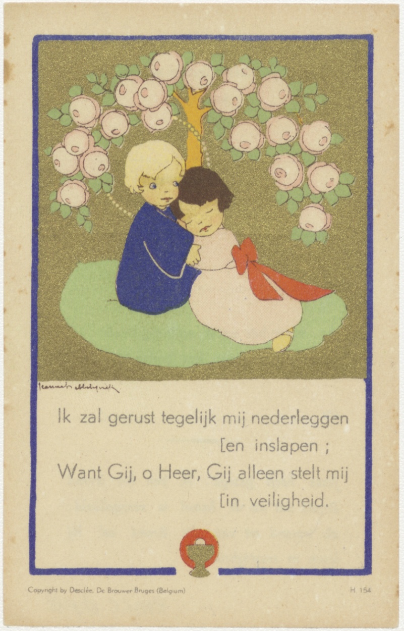 Twee kinderen onder boom; ik zal gerust tegelijk.., kz. H. Communie invulbaar