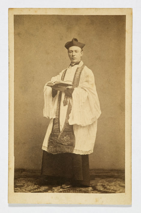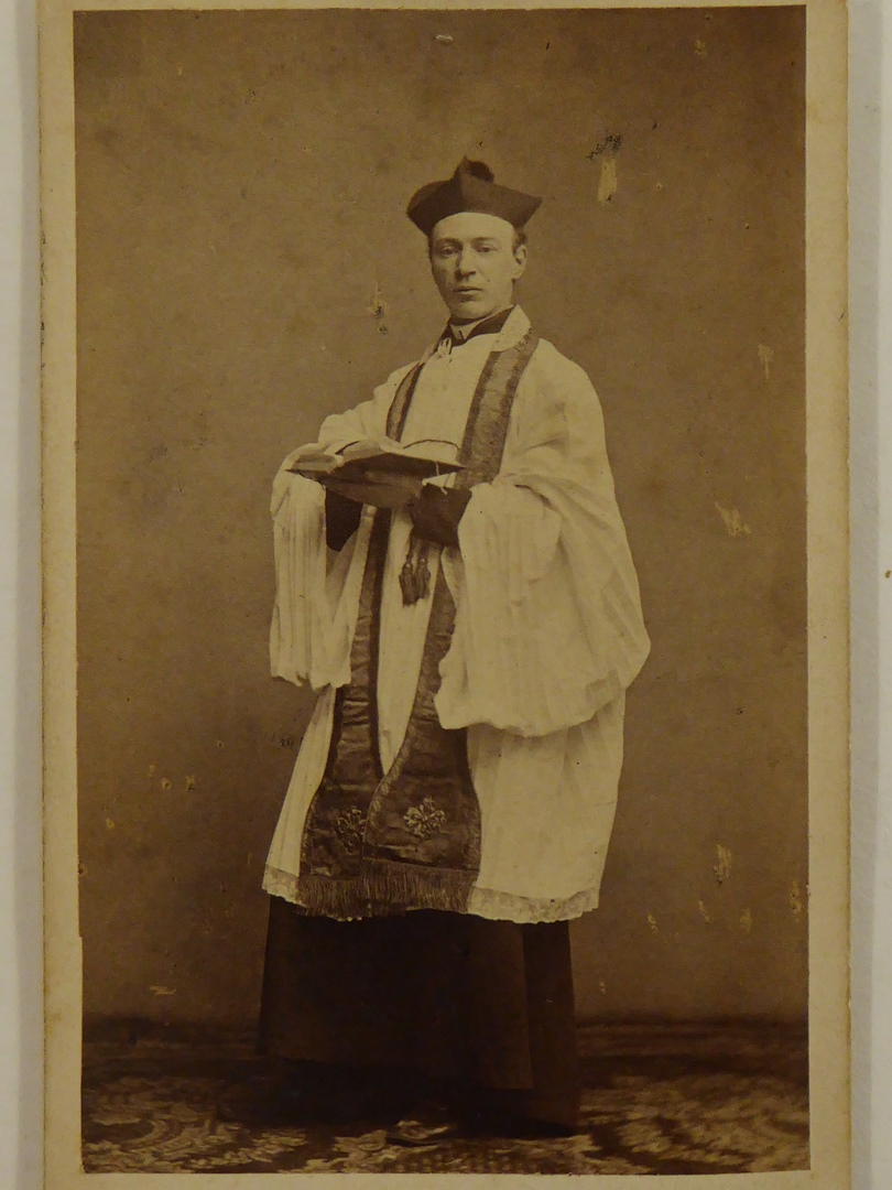 Portret van J.A. de Rijk, staand in ambtsgewaad met stola en bonnet