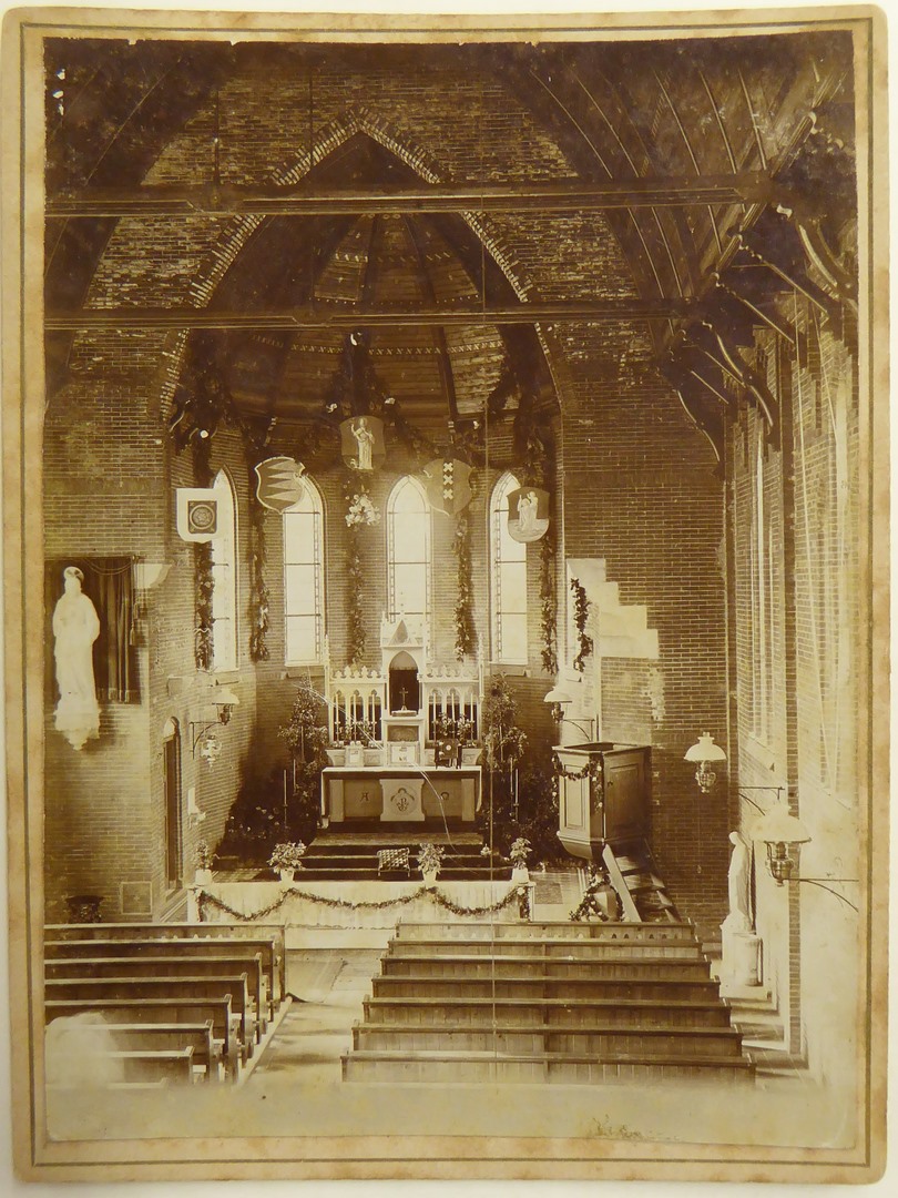 Interieur van een kerk met zicht op het altaar