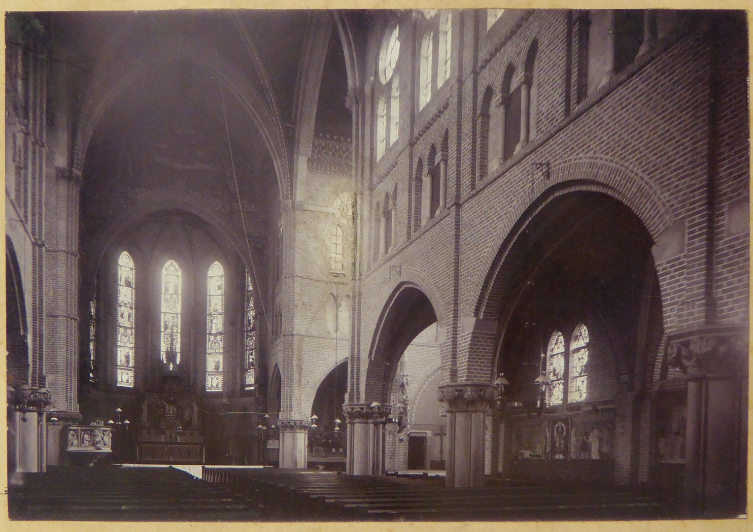 Interieur van de Sint-Urbanuskerk te Ouderkerk aan de Amstel met zicht op altaar en preekstoel